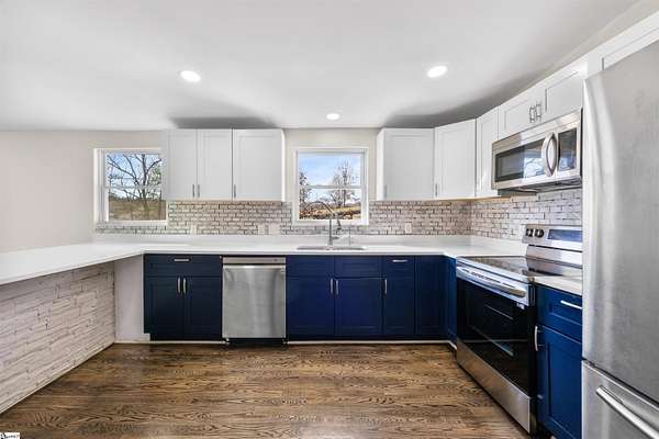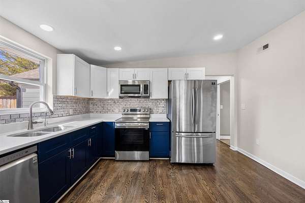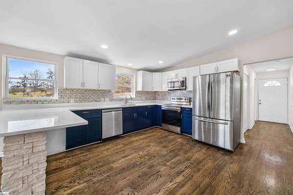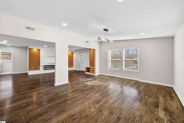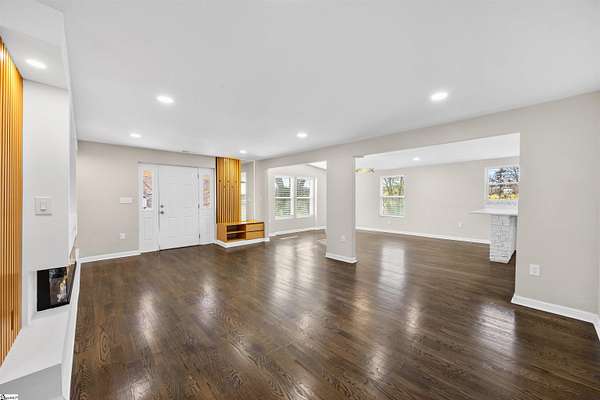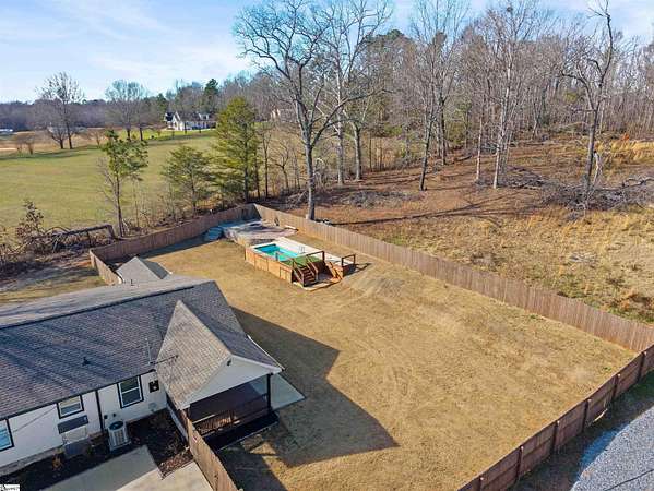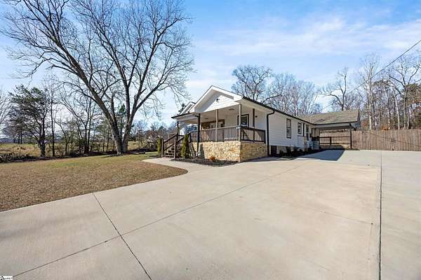 Fantastic and completely remodeled home in Greer! This charming 3-bedroom, 2-bath bungalow sits on a generous 1.62 acre lot and offers the perfect blend of updates and relaxed outdoor living, just 5 minutes from Lake Robinson and 10 minutes to downtown Greer. As you arrive, you’ll be drawn in by the newly paved driveway and two inviting outdoor living spaces — a large covered front porch and a vaulted, covered side porch, both ideal for entertaining or unwinding. The backyard is an entertainer’s dream, featuring an above-ground pool, perfect for guests and poolside gatherings. Inside, the home welcomes you with an open-concept living and dining area that flows seamlessly into a remodeled kitchen complete with appliances. To the right of the living area are two well-appointed bedrooms and a hall bathroom with double sinks. Down the hallway, you’ll find a spacious primary suite featuring a walk-in closet, dual vanities, and a shower. The primary bedroom also offers direct access to the vaulted covered side porch, creating a peaceful retreat. With thoughtful upgrades throughout, multiple outdoor living areas, and a functional layout, this home is truly move-in ready. Schedule your showing today and make this beautifully updated Greer home yours!