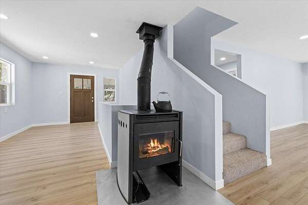 Spacious and thoughtfully updated, this 4-bedroom, 2-bath home offers 2,924 sq ft of versatile living space, including a daylight basement with its own entrance and full bath-ideal for multigenerational living, guest quarters, or a potential rental setup. The open floor plan flows beautifully, with recent upgrades including new siding, Armstrong commercial-grade laminate flooring, Pella windows and slider, energy-efficient mini-split systems, an updated bathroom, and fresh interior/exterior paint. Upstairs features two bedrooms, a bonus flex space perfect for an office or playroom, and generous storage throughout. Step outside to your private outdoor oasis: a stunning 65' x 45' crystal-clear organic pool with a cedar deck and pergola, plus a play structure and room to roam. The large upper deck is perfect for relaxing or entertaining while enjoying the peaceful natural surroundings. This unique property blends comfort, functionality, and outdoor beauty.