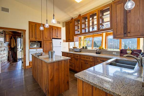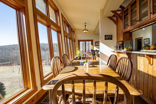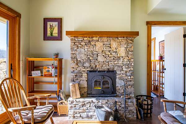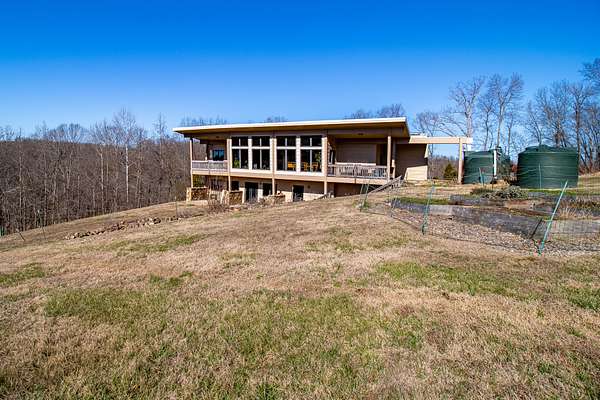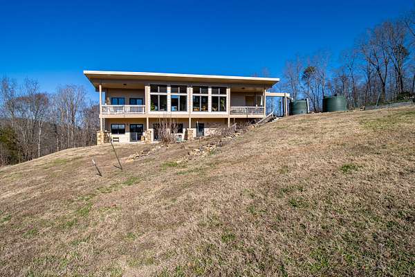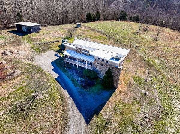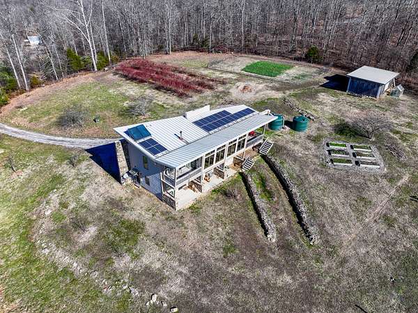 This LEED Platinum-certified home blends sustainability, craftsmanship, and agricultural abundance. Recognized with a Green Star Award by the Mid-TN U.S. Green Building Council, it was thoughtfully designed for energy efficiency, resilience, and connection to the land. A rare highlight is the mature blueberry grove, producing hundreds of pounds annually. The property also features a 5-year-old chestnut orchard with 25 trees, fenced fields, muscadine grape vines, and established gardens--ideal for homesteading or farm-to-table living. The home includes three EV charging stations and a Ford Home Integration System that allows a compatible Ford truck to serve as a backup generator. A 20' x 40' two-bay farm shed with an enclosed shipping container provides excellent storage or workshop space. Constructed with reclaimed materials throughout, the home showcases custom oak kitchen cabinetry crafted from deconstructed Rutherford County horse barns (including one built prior to the Civil War) and recycled glass countertops. Porcelain tile floors are positioned to capture winter sun while remaining shaded in summer for passive efficiency. The main level features a cathedral ceiling, open floor plan, and expansive views of rolling hills and pasture. Built-in wall speakers enhance the living and kitchen areas. The primary suite offers reclaimed oak floors, dual vanities, tiled walk-in shower, and a south-facing porch overlooking dry-stacked stone terraces and gardens. The lower level opens to grade and includes a sitting room or office with a Morso wood-burning stove, laundry room, built-in root cellar, full bath, and second bedroom with walk-out patio. Exterior finishes include locally harvested fieldstone and Nichiha siding made with 60% recycled materials. 291 square foot root cellar in basement not included in square footage. A truly distinctive, high-performance home built for long-term, healthy living. See 3D tour. First showings at open house 3/1: 2-4p.