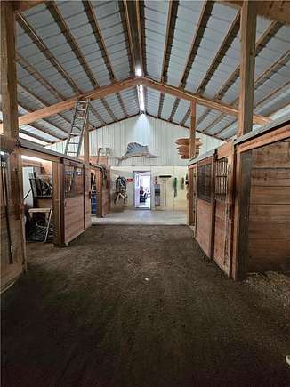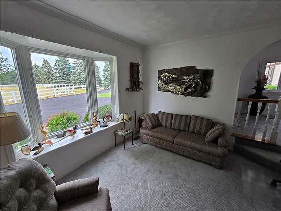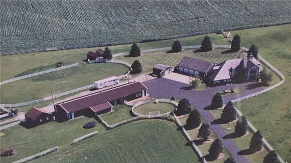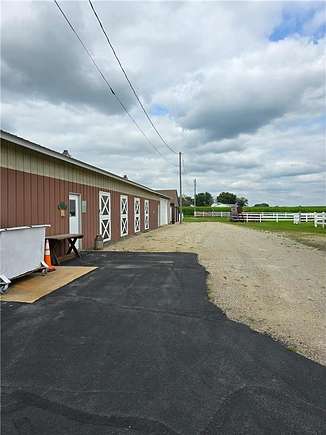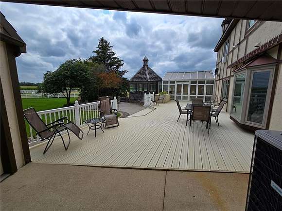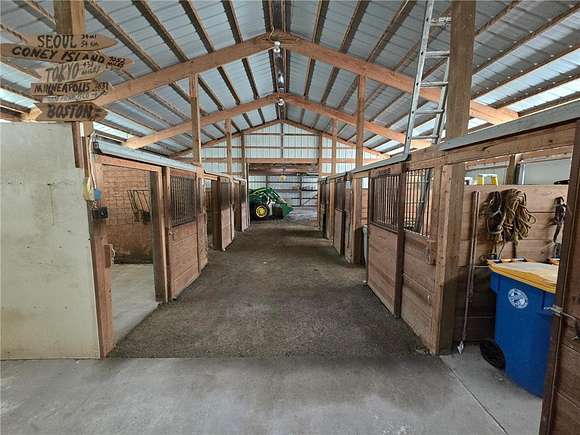 Looking for the perfect equestrian estate? This exquisite income producing ranch will meet all of your needs. Located on the southeast edge of town on 5 acres, this custom built two story home includes beautiful acreage with incredible scenic views. Spacious 5 bedroom, 4 bathroom two story home has it all, including your own tower! Main level features a sunroom, four season porch, gazebo, large maintenance free deck, patios, vaulted ceilings natural woodwork, central vacuum, recessed living room, oversized family room with a wet bar, main floor laundry hookups, pantry, mud room, five stall garage and more. The kitchen features custom cabinets that are curved for comfort and appearance, granite countertops, upgraded flooring, built in desk and a bay window. The upper level includes four bedrooms and three bathrooms. Outside you will find a seven stall horse barn (109 X 36), Horse shelter (12 X 22), additional 2 stall garage (24 X 24) and an additional one car garage (16 X 20). Approximately 17 additional acres also available priced at $50k/acre. Property is up to city limits and may be annexed to city if desired.