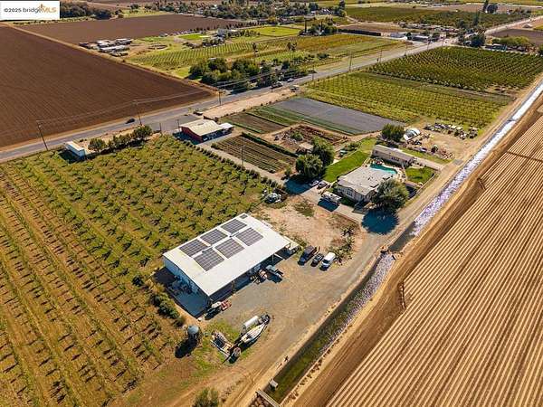Rare opportunity to own a turnkey organic farm and vineyard in Brentwood's famous U-Pick region, minutes from San Francisco and San Jose. The property features two modern homes (main residence is 2,565 sqft plus second home/ADU approx 1,000 sqft), a solar-powered 5,000 sq ft steel winery/shop, fruit stand with walk-in cooler, greenhouse, and electric irrigation pump with district water access. All 34 acres are CCOF-certified organic, including approximately 20 acres of orchards and mixed vegetables (peaches, nectarines, cherries, apricots, citrus, figs, and more) and a 4-acre producing vineyard. Fully fenced and ideally suited for use as a working farm, vineyard, or private agricultural estate with exceptional infrastructure and income potential.