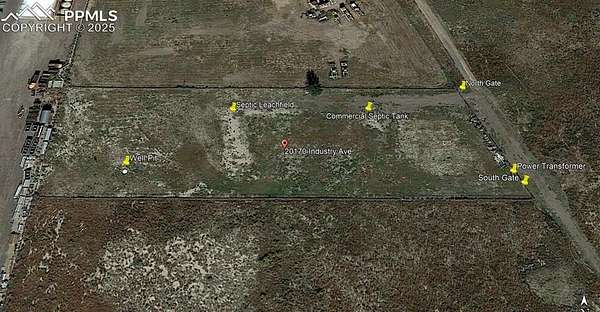 Est $2,614/moIndustrial Land Excellent Industrial I-3 zoned two and one quarter acres parcel complete with commercial well and engineered septic installed is located midway between Pueblo and Colorado Springs. Recently completed new road base across the property and entrance road. Manufacturing, Storage, Supply, Transportation staging, Large Equipment Storage are possible uses for industrial acreage. El Paso County will also allow "caretaker house" in the property when you build your shop/storage/or warehouse business.