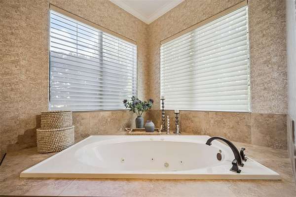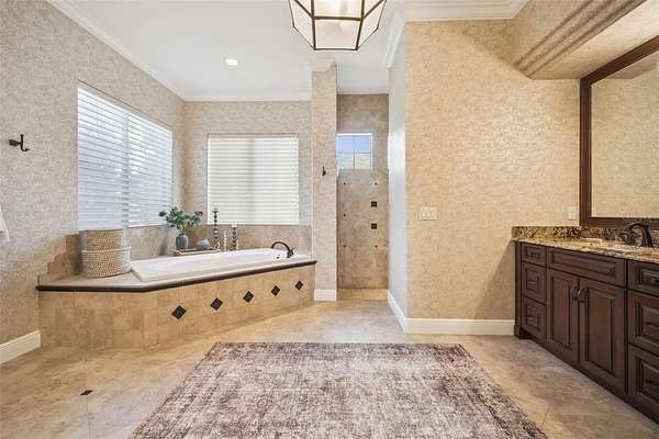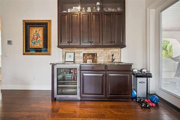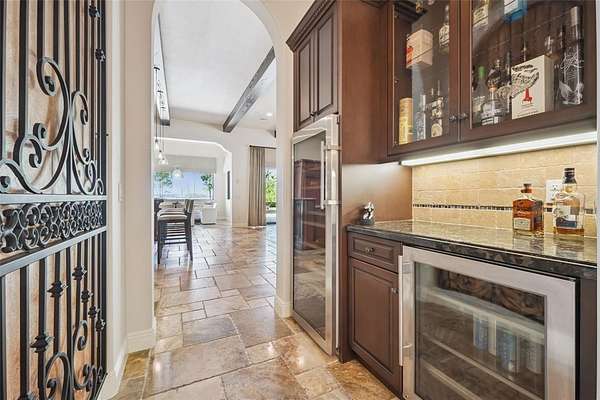 - Built-In Features, Ceiling Fans(s), Central Vaccum, Coffered Ceiling(s), Crown Molding, Dry Bar, High Ceilings, In Wall Pest System, Open Floorplan, Pest Guard System, Primary Bedroom Main Floor, Smart Home, Solid Wood Cabinets, Split Bedroom, Stone Counters, Walk-In Closet(s), Wet Bar, Window Treatments
