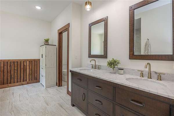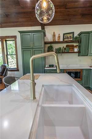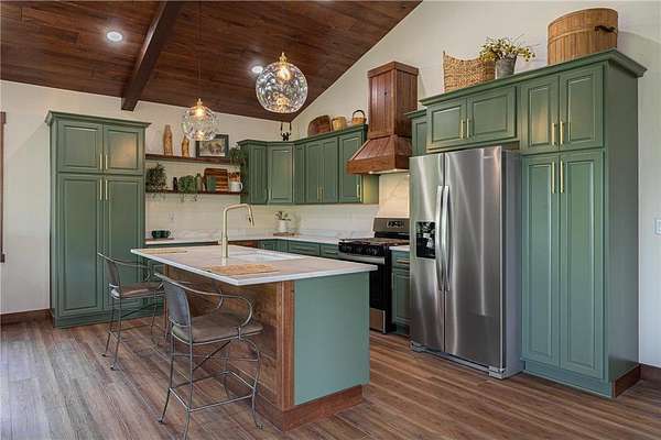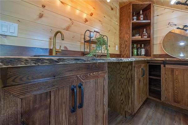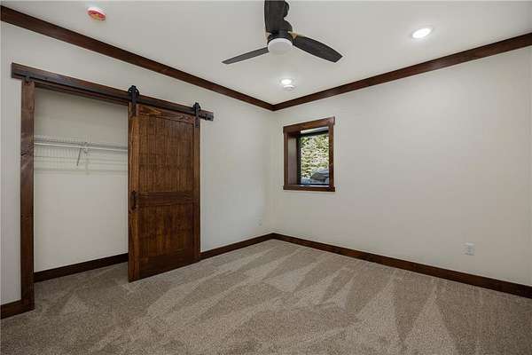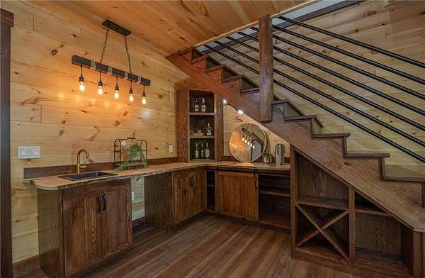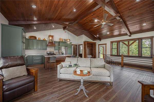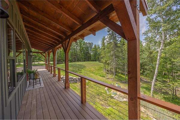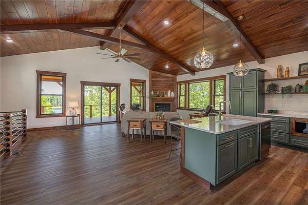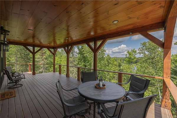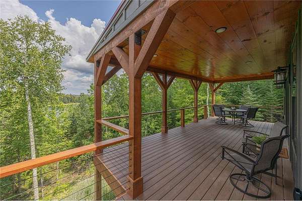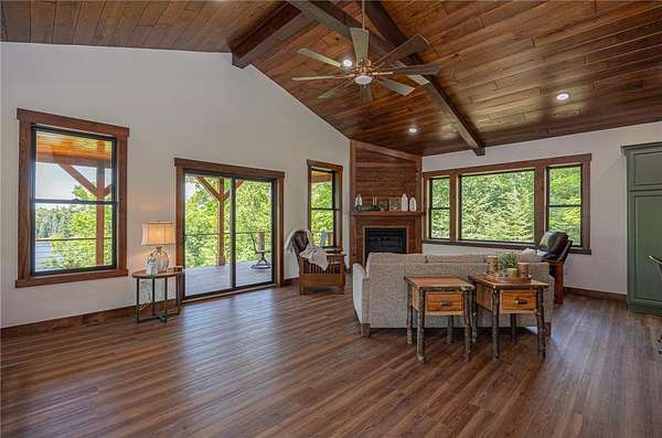 Some homes are designed to impress, this one was built to belong. Nestled high in the canopy above Lost Lake, where the waters flow freely into Kid Lake, this newly constructed retreat doesn't just offer a view, it offers perspective. Every window frames the changing seasons like a living painting: hardwoods blazing in fall, snow-dusted pines in winter, and the mirror-still lake all year round. A wraparound deck stretches across two sides of the home, covered in rich wood and open to the sights and sounds of the forest. Step inside, and the space opens into a soaring, vaulted great room where the dining, kitchen, and living areas flow together under a ceiling of warm wood and exposed beams. A gas fireplace anchors the living room. The kitchen was built with both beauty and function in mind with generous cabinetry, a five-burner gas stove, and an island for conversation or coffee. The real show-stopper is the pantry that's as organized as it is ingenious, with pull-out shelves and hidden outlets for your favorite appliances. The owner's suite is a quiet sanctuary with a wood-paneled wall, private bath with double sinks, a soaking tub, and a walk-in shower trimmed in stone. A separate water closet and custom closet shelving round out the thoughtful design. There's also a powder room on the main level, because good design is nothing without convenience. Downstairs, you'll find a generous family room where knotty pine wraps the space in warmth, and a live-edge wet bar invites easy entertaining. From here, walk out to the lakeside patio and take in the hush of the water below. Two additional bedrooms and a full bath with double sinks give guests (or family) their own comfortable corner. A detached garage with a covered portico adds to the appeal, but it's the details that leave a lasting impression: iron railings, wooden stairs, exquisite light fixtures, and hardware that feels like it was chosen, not just installed. This is not just a lake home. It's a home with soul, surrounded by trees, light, water and peace.