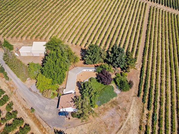 Nestled on just over 29 gently sloping acres, this stunning vineyard property offers the perfect blend of lifestyle, beauty, and agricultural opportunity. Planted between 1982 and 2001, the vineyard features premium varietals including Pinot Noir, Cabernet, Chardonnay, Riesling, and more -- each thriving on the south-facing slope that maximizes sunlight exposure and grape quality. The vineyard is fully equipped with drip irrigation and frost mitigation sprinklers, with water provided by The Dalles Irrigation District, ensuring efficient and reliable management throughout the growing season. At the heart of the property sits a single-level, 2,000 sq. ft. home, built in 1983. This well-designed residence features three bedrooms and two bathrooms, a bright, open floor plan, and high ceilings that create an airy, inviting atmosphere. Large windows frame sweeping views of the surrounding vines, providing a serene backdrop from nearly every room.