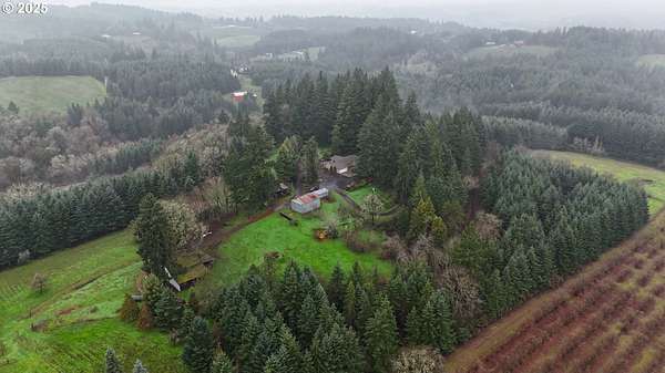 Welcome home to your private retreat of 32 Lush Acres of Vineyard, Farm, or Livestock potential just waiting for you!! Approx. 20 acres is cleared, Approx. 21 Acres with vineyard potential with Jory soils and elevations of 300-540. Loads of options for whatever dreams you bring with you or have yet to dream!! Horses, cattle, vineyard, cropsall can be yours. Plus the benefits of low property taxes. Lots of room for RV parking. Multiple barns, tractor sheds, and outbuildings. Fencing & cross fencing. Stunning views from every room of forest, mountain, hillside, and valley. House is a 3 bedroom, 1 1/2 bath home with laminate flooring, large family room with fireplace, enclosed sunporch, and extensive patios for entertaining and having the whole family over. Beautiful Oak cupboards with pull out shelves and a breakfast bar in the kitchen/dining area opens onto the sunporch. It has a composite roof, T-111 & Cedar siding. It has a heat pump and mostly vinyl windows throughout so you will be COMFORTABLE no matter the weather. Plus a fireplace for those winter days that you want to be extra cozy. Beautiful forests to explore. Take your morning coffee out to your viewing deck for a magical sunrise over the valley, and enjoy the beauty of four distinct seasons. Even on a rainy day you are met with the magic of misty mountains. Surround yourself with peace and stunning views, but only 15 minutes to everything you need. 5 minutes to tasting rooms and vineyards. Immerse yourself in the heart of wine country and real farm to table living. A MUST SEE Magical Place!!