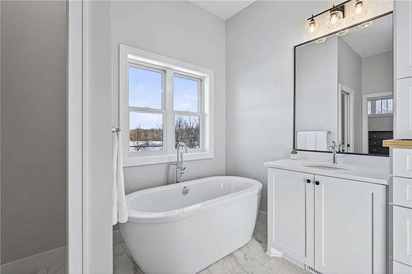Start the New Year off right with the opportunity to own this one of a kind 10 acre property in the New Woodhaven development of Nowthen! This home offers the option for one level living with open concept spaces ideal for entertaining. The main floor features 2 bedrooms, 3 bathrooms, an office, a stunning kitchen, a dining area, great room, mud room, laundry, and a large pantry. The primary suite feels like a private retreat equipped with an ensuite with a generous walk in closet.