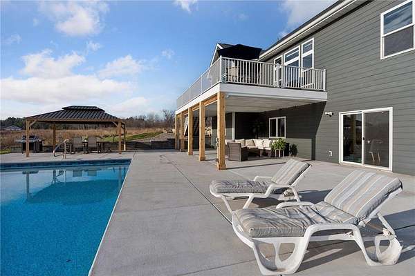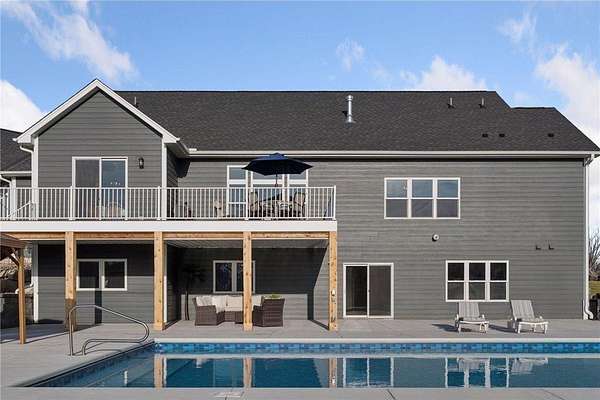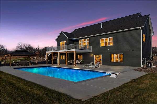 The backyard showcases multiple outdoor living spaces centered around a spectacular heated 3' to 8' flat bottom pool for safe enjoyment with custom deep water ledge seating, ambient lighting, and an automatic cover. The expansive deck with under decking allows you to stay dry no matter the weather and continue enjoying the outdoors. The built in gazebo has electrical in place for a future outdoor kitchen. Additional amenities include a hot tub hookup, professionally designed landscaping, accent lighting, and an in ground sprinkler system with rain sensors.