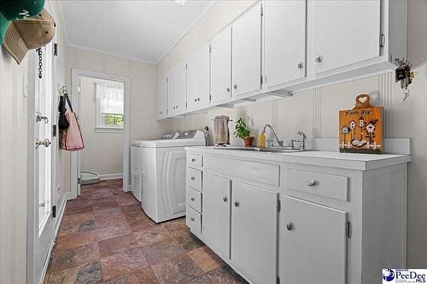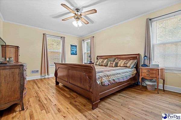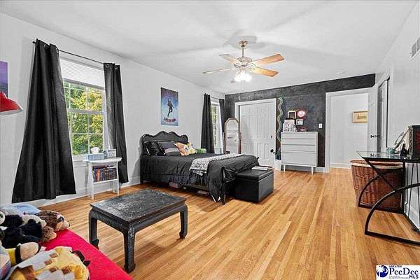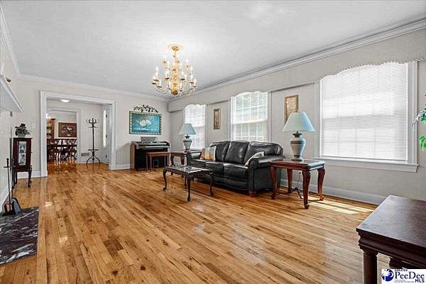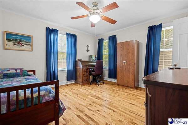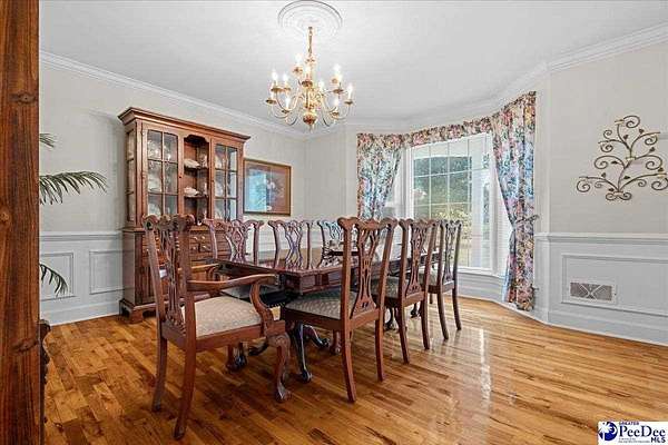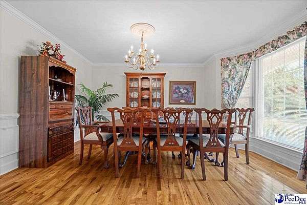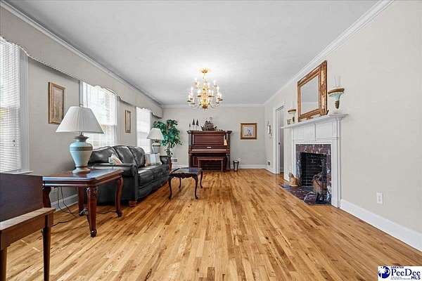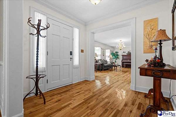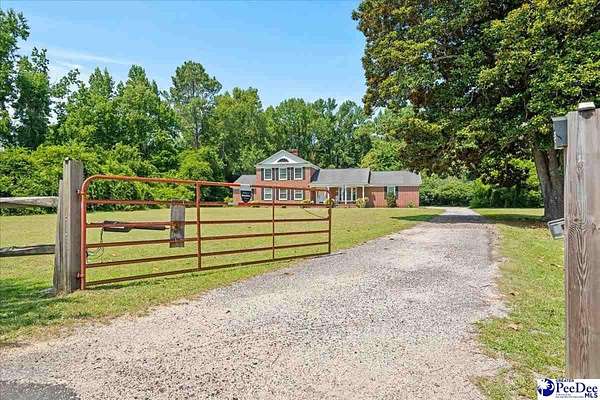 Back on market NO FAULT OF SELLERS. MOTIVATED! Welcome Home to this one of a kind traditional brick home on 4 acres! If you are looking for space in the country but close to the interstate you are in luck. This home has a country feel and is situated right off I-95. Short day trip to Myrtle Beach and Charlotte, NC. Upon entering the foyer you are greeted with hardwood flooring, heavy crown molding and wanes coating. This home is filled with charm and details that are not often found in newer construction. On the main level there is formal dining, formal living, laundry room with a half bath, kitchen/ breakfast area, a great living area, sun room area being used asa game room, and two bedrooms with a jack-n-jill style bathroom. Each bedroom has access to a private toilet and sink with shared shower. If you are wanting a private bathroom you have the potential to use the smaller bedroom as an office or getting ready room so you do not have to share the bathroom with anyone. The downstairs rooms are separate from the other living areas of the home. Upstairs there is an impressive walk in attic space. An office room and two additional bedrooms with a jack-n-jill bathroom. Enjoy the outdoors with a partially fenced backyard space. There is plenty of room for a shop or pool. Raised garden beds, blueberry bushes and an apple tree are currently very fruitful. Schedule your showing today!