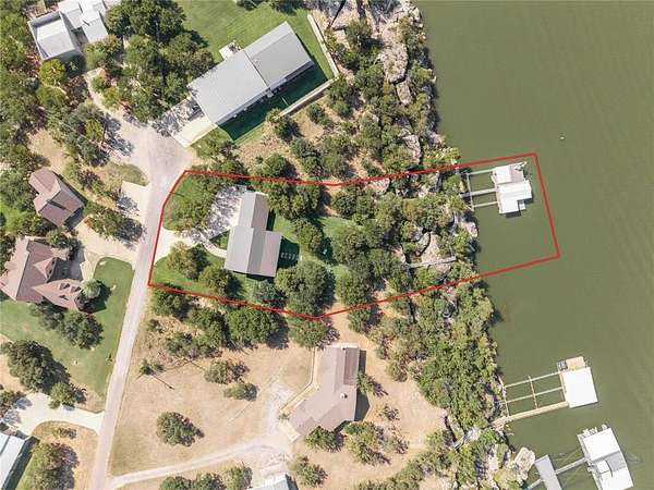 Enjoy captivating panoramic views of beautiful Lake Brownwood from this completely-remodeled, fully-furnished four-bedroom, three-bath lake-front home in Deepwater Estates! Located on a secluded cul-de-sac, the two-story home anchors a heavily-treed 1.55-acre lake-front lot covered in lush St. Augustine grass and fed by a lake-water-supplied sprinkler system. The enormous backyard is fully-shaded and enclosed by decorative see-through steel-framed net fencing. The gently-sloping lot affords hard-to-find lakefront privacy and lots of elbow room between neighbors. And the 52' x 30' two-slip dock is in a class by itself - literally - there are no other docks around it, simply scenic unspoiled lakefront shoreline! The covered outdoor kitchen includes concrete countertops, gas grill, undercounter refrigerator, ice bin and bar seating. The spacious home features an open living-dining-kitchen arrangement with one bedroom and bath downstairs and three bedrooms and two baths upstairs including the primary bedroom. The balcony includes two ceiling-hung porch swings perfect for winding-down a busy day or jump-starting a fun-filled day on the lake. The living room and outdoor furniture are upholstered in Sunbrella fabrics for easy care and clean-ups. And the three-car garage provides ample covered parking with additional parking on the roomy concrete driveway. Deepwater Estates is a gated luxury lakefront subdivision with phone-in gated access from two sides of the subdivision. Subdivision lots range in size from one-and-half to more than four acres. Neighborhood traffic is light and limited to residents and guest only.