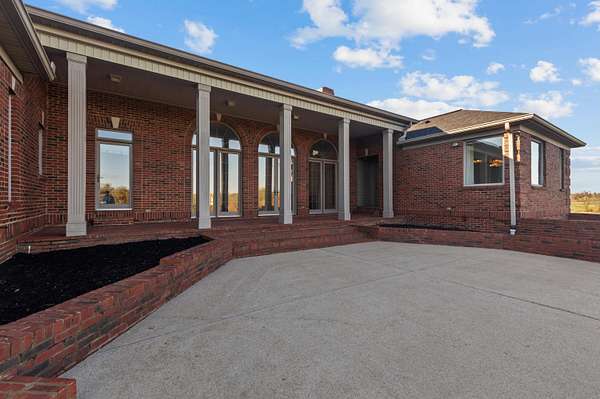 A Rare Offering: Brick Ranch with a prime location. Welcome to this luxury custom-built brick ranch, majestically situated on 5 maintained acres in a highly coveted location. From the moment you arrive via the stately circular driveway, you'll know you've found something special-a sanctuary designed for sophisticated living and effortless entertaining. The interiors are defined by architectural drama, showcasing soaring vaulted and elegant barrel ceilings throughout the main living spaces. The gourmet kitchen is a chef's delight, supported by a spacious butler's pantry. For the consummate host, entertainment flows seamlessly with wet bars located on both the main level and the basement, making large gatherings or casual evenings truly effortless. Escape to the expansive primary suite, a private oasis complete with its own dedicated and charming enclosed patio, offering a tranquil spot for morning coffee or evening relaxation, regardless of the weather. The partially finished basement adds substantial square footage, maximizing living and recreational space. Car enthusiasts and hobbyists will appreciate the incredible utility features: a large 4-car attached garage and a convenient basement garage entry for easy access and secure storage. For future peace of mind, a new roof was installed in 2025. Complemented by a spectacular covered patio perfect for entertaining, and a versatile detached building/barn-ideal for equipment, storage, or workshop use. This estate truly offers the best of custom craftsmanship, acreage, and an unbeatable location.