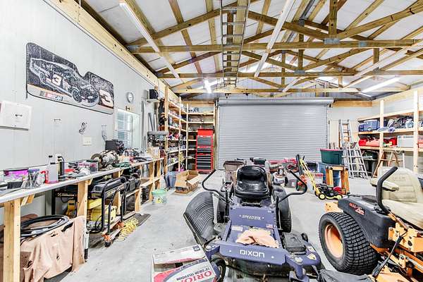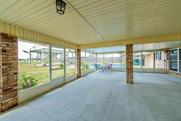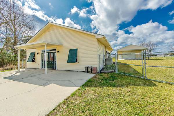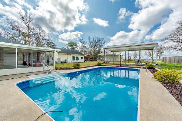Welcome to this spacious and beautifully appointed property offering comfort, functionality, and room to enjoy both indoors and out. Situated on 1.65 acres, the home features 3,082 square feet of living area with a layout designed for everyday living and entertaining. Inside, you'll find four bedrooms and three and a half bathrooms, along with a dedicated office perfect for working from home. The main living area is warm and inviting with a wood-burning fireplace and striking beamed ceilings that add character and charm. The primary bedroom and bathroom are conveniently located on the ground floor, providing privacy and easy access. The home showcases a blend of ceramic tile, laminated wood, hardwood, and carpet flooring, complemented by granite countertops that add a touch of elegance to the kitchen and baths. Step outside and enjoy your own private retreat. The property includes a screened porch, an in-ground saltwater pool, and a large pavilion ideal for gatherings, outdoor dining, or relaxing weekends at home. The entire backyard is fenced, offering space for pets, recreation, or gardening. Additional features make this property truly stand out. A detached 2-bedroom, 1-bath apartment with 1,351 square feet, provides excellent potential for guests, extended family, or rental income. There is also a 30' x 30' workshop, perfect for hobbies, storage, or projects. For peace of mind, the home is equipped with a whole-house 38 kW standby generator. The front yard is beautifully defined by a very large, stately Live Oak tree, creating a classic Southern setting and unforgettable curb appeal. This property offers the perfect blend of space, charm, and versatility-ideal for those seeking comfort, functionality, and room to live, work, and entertain.