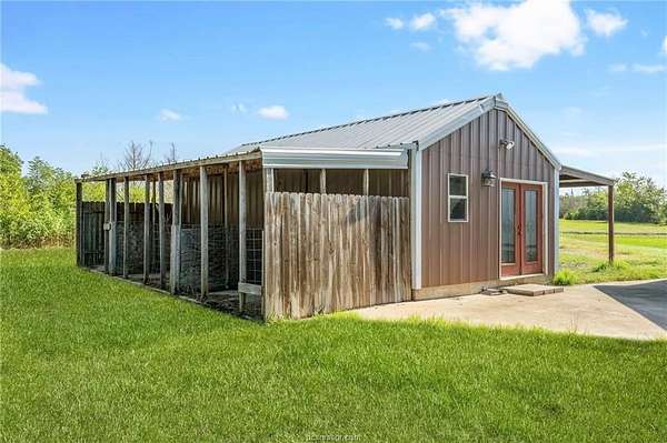 Fully remodeled 4-bedroom, 3-bath farmhouse in Bedias, TX! This move-in-ready home offers a spacious split-floorplan, oversized family room, and French doors leading to a 12x70 back porch with serene views of a stocked pond. The home has been completely updated with modern finishes including stainless steel appliances, new flooring, fixtures, and fresh paint throughout. Enjoy true country living with a garden area, old-school clothesline, and a concrete patio that connects to a 31x16 metal workshop featuring a bar, decked attic, electricity, carport, and flexible space for kennels or storage. Whether you're looking for a quiet retreat or a property with room to entertain, this one has it all. Conveniently located just 30 minutes from Huntsville, 15 minutes from Madisonville, and 45 minutes from College Station.