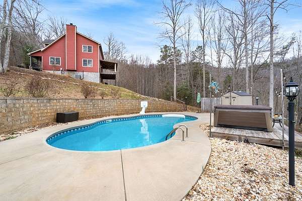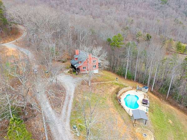 Beautiful home located in Hayesville, NC, offering a seasonal mountain view of Eagle Mountain and Bell Mountain. The home features a covered front porch and a functional layout suitable for full-time living or a mountain getaway. Outdoor living spaces include a back deck designed for lounging and entertaining, along with a saltwater pool and outdoor entertainment area. The setting offers privacy and a quiet atmosphere, making it easy to enjoy the surrounding mountain landscape. The property sits on just over two acres with additional lots available for purchase, providing options for future use or expansion. The sloped terrain enhances the view and natural setting. Conveniently positioned between Hayesville, NC and Hiawassee, GA, the location allows access to dining, shopping, and recreation in both communities while maintaining a sense of space and separation from town traffic.