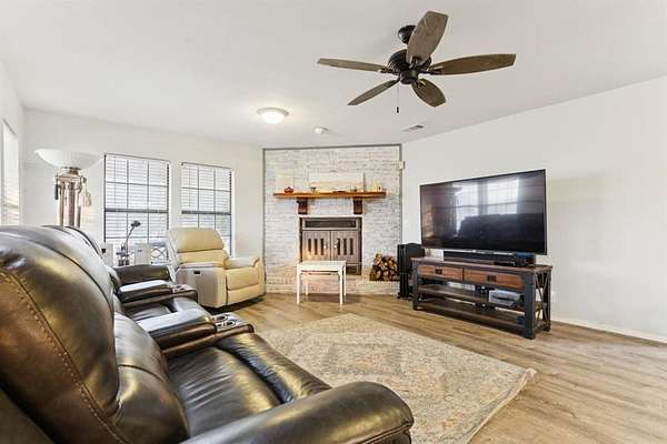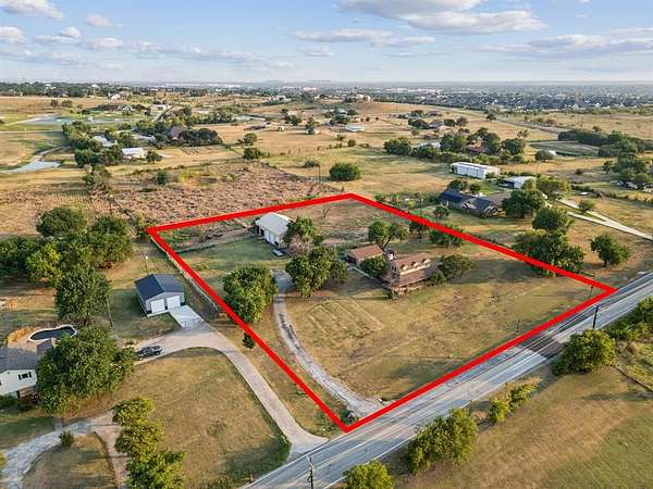 Relax on the wraparound covered porch, perfect for enjoying the wide-open views. The large living area includes a cozy brick fireplace, and the home also features a dedicated laundry room. Outside, you'll find a massive 60x40 RV barn with four overhead doors--ideal for RVs, boats, or workshop space. Horses are allowed, and the acreage offers plenty of room for animals, gardens, or future expansion. Located just minutes from shopping, dining, and major highways, this property offers the best of both worlds--country charm and city access. Don't miss this unique opportunity in Northwest ISD!