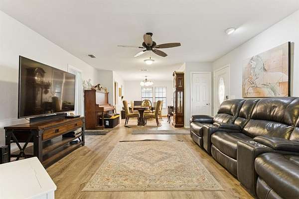 Enjoy peaceful country living with city convenience in this charming 3-bedroom, 2-bath home on 4.79 acres in desirable Haslet! This well-maintained property offers 2,120 sq ft of living space, including a spacious kitchen for all your culinary needs. The main-level primary suite features a jacuzzi tub, separate shower, and ample closet space. Two additional bedrooms and a full bath are located upstairs.