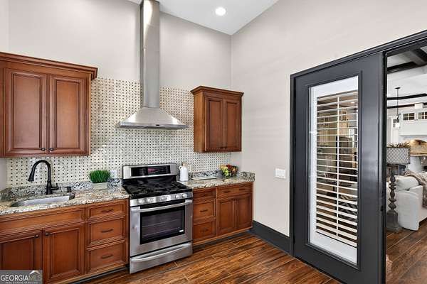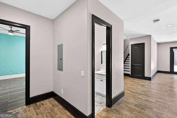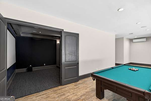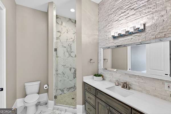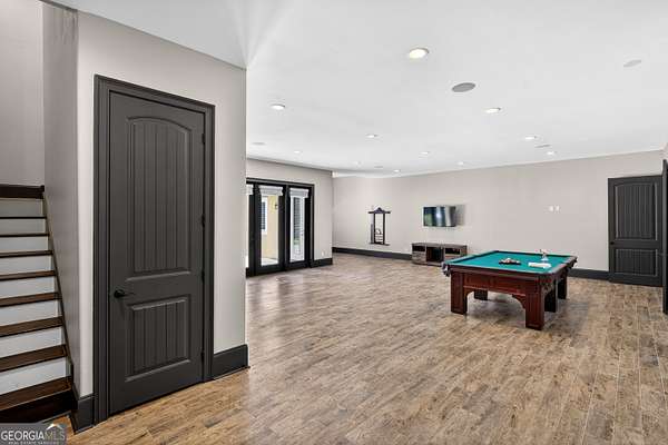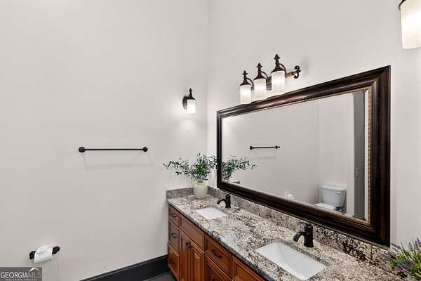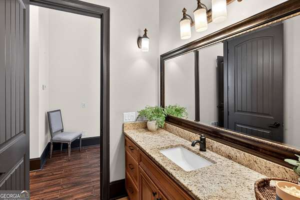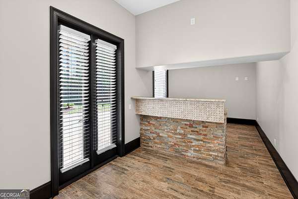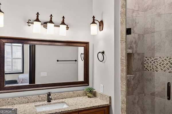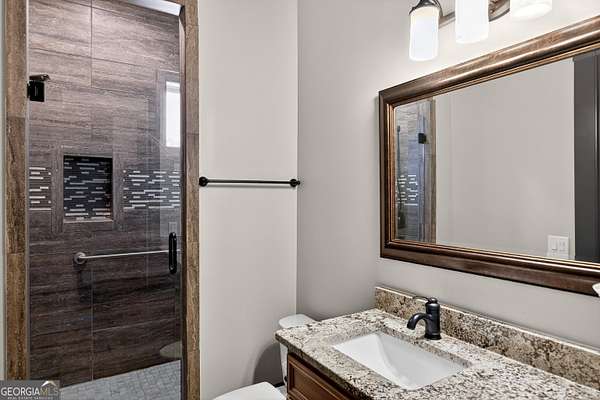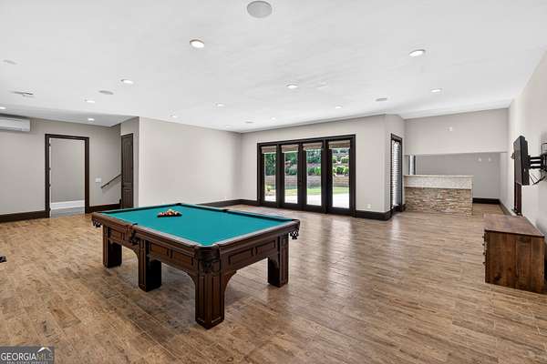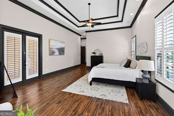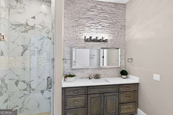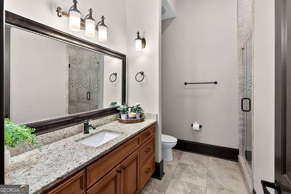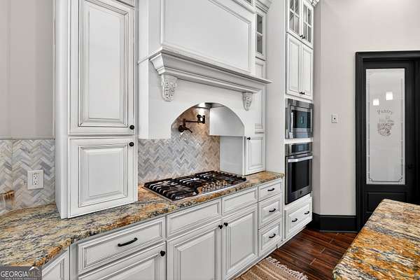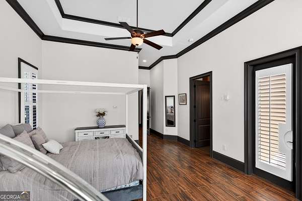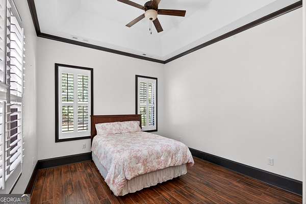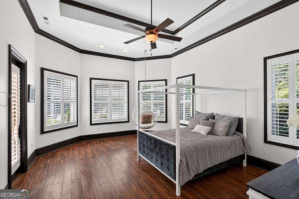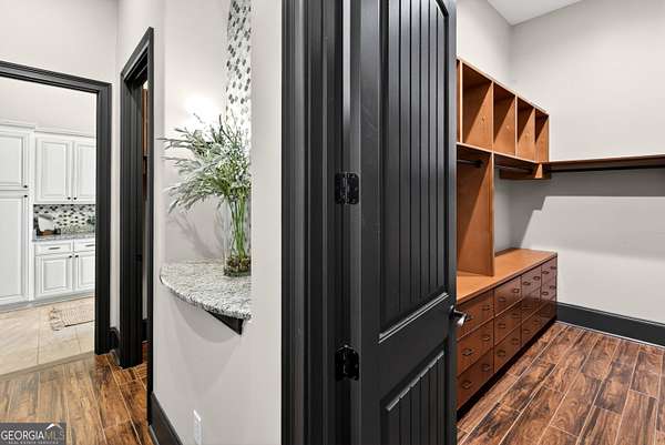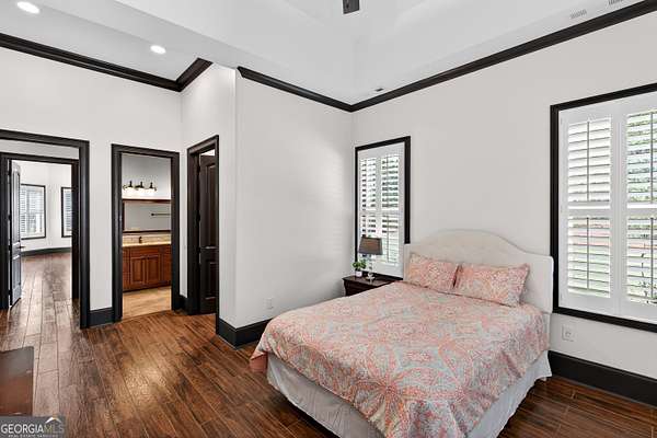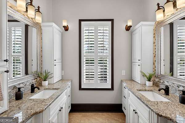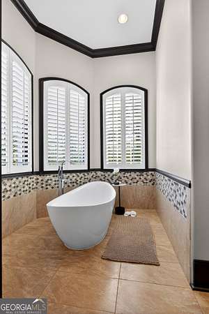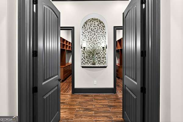 Tucked away on nearly 2.5 acres of complete privacy, this Custom-built Estate offers a rare opportunity to enjoy luxury living in the heart of Peachtree City. From the moment you walk through the grand double doors into the foyer, you know you've stepped into something truly special--a one-of-a-kind, 2015-built custom ranch with a fully finished terrace level that feels both elevated and effortless. This home is a true masterclass in architectural design, where every curve, ceiling detail, and space was created with intention. Soaring ceilings ranging from 14 to 22 feet are layered with coffered, barrel, and domed designs, complemented by intricate millwork, curved walls, and custom windows that flood the home with natural light. The main level features five spacious ensuite bedrooms--each comparable in size to a primary suite-with oversized vanities, custom tiled showers, and walk-in closets with built-ins. The primary suite is thoughtfully positioned on its own private wing, offering a true retreat with a sitting area, three walk-in closets, and a spa-inspired bath featuring a walk-in shower, freestanding soaking tub framed by bay windows, along with generous cabinetry, vanities and built-ins. The formal living and dining rooms make a statement, anchored by floor-to-ceiling built-ins and custom cabinetry, with a dining space designed to host gatherings of 14+. Double doors lead to a private side patio, creating the perfect setting for intimate outdoor entertaining. At the heart of the home, the chef's kitchen opens seamlessly into the great room and features gorgeous cabinetry, a walk-in pantry, pot-filler faucet, a massive island for prep along with additional eat-in counter space. The casual dining area is truly exceptional, highlighted by a domed ceiling and a curved wall of windows overlooking the covered veranda and PebbleTec pool/spa. A second kitchen just off the great room and deck adds flexibility-ideal for outdoor entertaining or keeping cooking aromas separate. A private office, half bath and full laundry room finish the thoughtfully designed main level just shy of 6,000 sq ft. The expansive covered veranda wraps across the back of the home, with access from the primary suite, living areas, and one of the ensuite bedrooms-creating a seamless indoor-outdoor lifestyle. Downstairs, the terrace level continues to impress with 14-foot ceilings and eight-foot doors, offering a layout designed for entertaining and extended living. Features include a private theater room, expansive open living space with bar area, and two oversized bedrooms connected by a beautifully appointed full bath, plus an additional half bath-ideal for guests or multi-generational living. An additional private patio is accessible from the terrace level. The 2.45-acre lot provides exceptional privacy along with ample yard space for recreation, gardening, or simply enjoying the outdoors. The 5-year new PebbleTec saltwater pool and spa with tanning shelf and modern technology creates a true resort-style experience. Additional features-including 900 sq. ft 3-car drive-through garage with EV charger, new tankless water heaters, foam insulation, abundant storage, plantation shutters on every main-level door and window, and an invisible pet fence-add both efficiency and ease of living. Located in the sought-after Hyde Park subdivision, where custom homes rarely come available, this property offers the unique combination of an estate property just minutes from everyday conveniences such as shopping, dining, amenities and award-winning schools. Hyde Park also features a neighborhood pond, dock and gazebo, with direct access to Peachtree City's golf cart paths, and a private neighborhood path with access to nearby schools. Designed for both grand entertaining and everyday living, this property is truly exceptional.