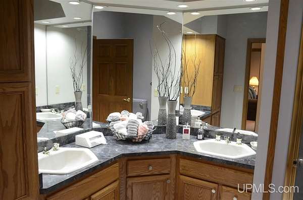 REDUCED!! This extraordinary upscale home is located in the Upper Peninsula of Michigan on one of the finest prime lakes in the area, Stanley Lake. Situated on 2.68 acres with 288' of frontage on this full recreational Lake, this stellar of a home is built solid and designed for the more exquisite palate. 3+ bedrooms, 4 baths with the basement completely finished. 2-car attached, and 3-car detached garages, both heated and the out-garage has a bathroom. All this and much more, and this home is located within 5 miles of Iron River, Ski Brule Mountain and within 5 miles of some of the best recreational trails in the U.P. This property is best described as a year-round home but could alternatively be fruitful as an investment property on a nightly, weekly, or even monthly rental schedule. A full list of features on this lovely home is available to all agents upon request, including a recent survey map. Pre-qualified buyers can tour this impeccable home which features a large kitchen with built-ins, both an informal and formal dining areas, a four-season sunroom overlooking the spacious custom patio facing the waterfront. So, so much more!! Only 37 miles from Eagle River Wi, 30 miles from Phelps Wi, 49 miles to Iron Mountain MI.