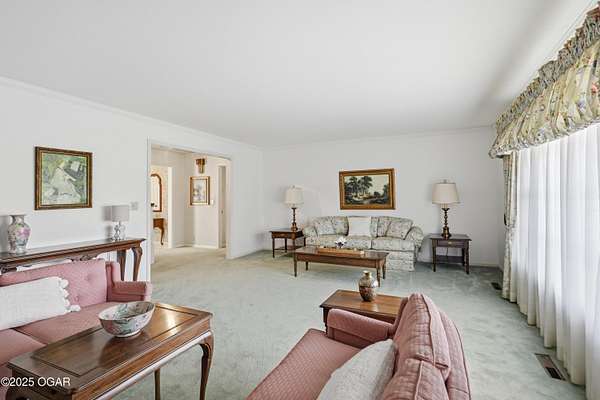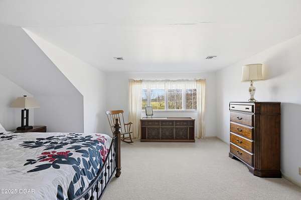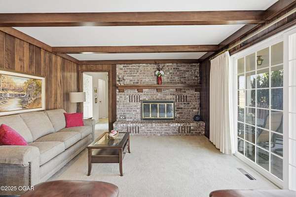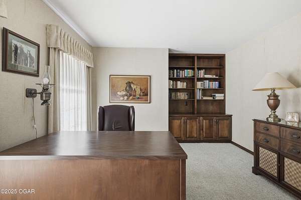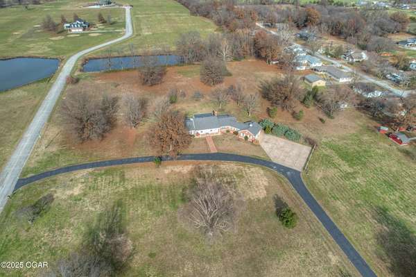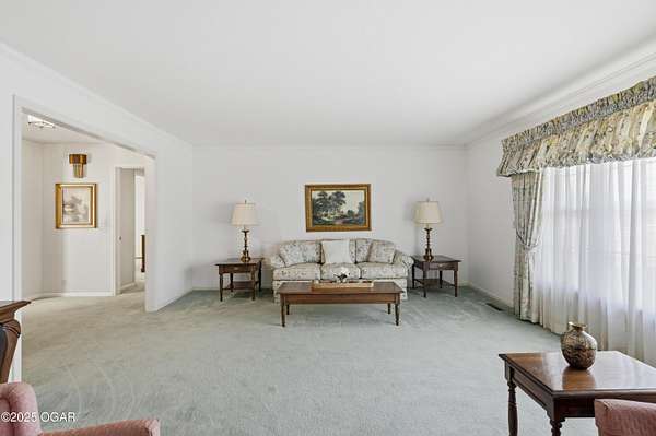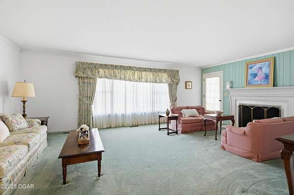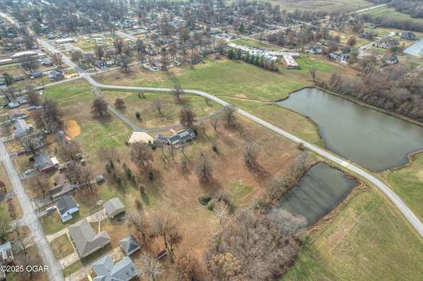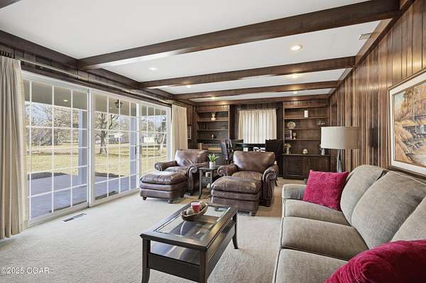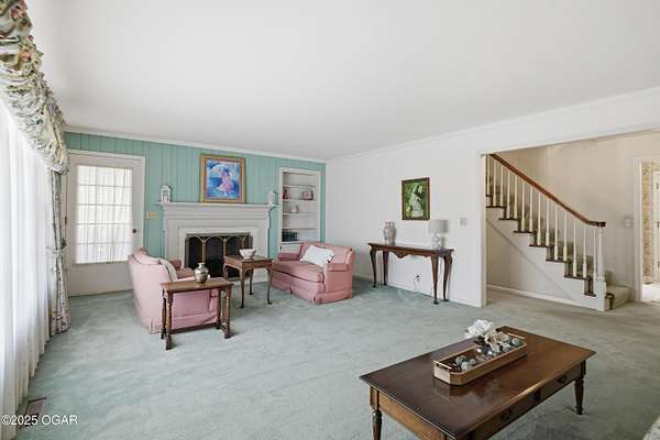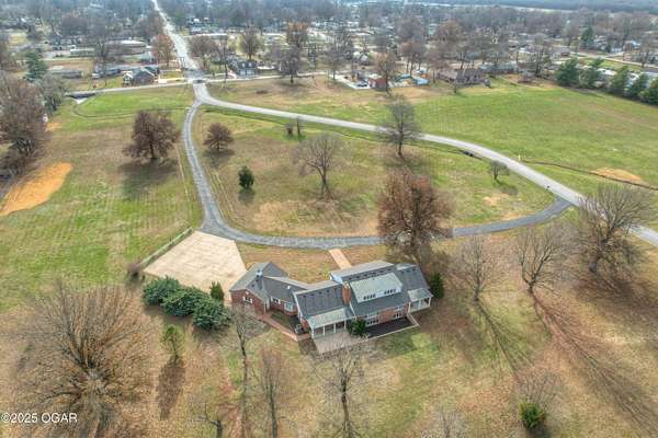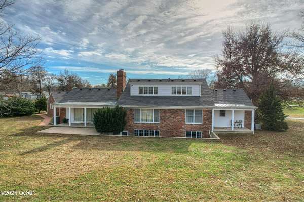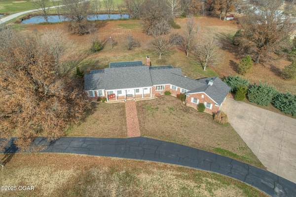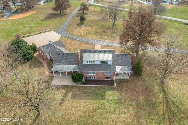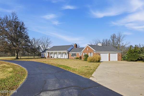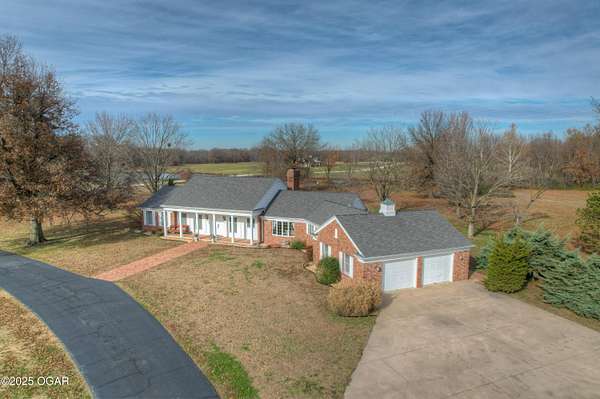Discover timeless elegance and exceptional space at this stately two-story home on approximately 5.5 acres in Lamar, MO. A sweeping, circle asphalt driveway (recently resurfaced), welcomes you to a classic covered front porch with columns, setting the tone for the charm throughout. Inside, a gracious foyer, along with an elegant sitting room with a generous coat closet, complete with a formal powder room/1/2 bath awaits you. The foyer continues to flow seamlessly to a formal living room with a cozy gas fireplace. The beautiful paned window wall creates extraordinary light to the entire room, which overlooks the picturesque backyard. The adjacent warm and inviting family room features a beamed ceiling, wood fireplace with a spacious mantle, and built-in book shelves. Both the family room and the formal living room have direct access to a covered porch/patio and the beautiful, private backyard. The formal dining room (adjacent to the kitchen), overlooks the front yard with a breathtaking window wall. The expansive eat-in kitchen offers a bay window, center cooking island, and a built-in desk. The nearby laundry room (Entry from the attached 2-car garage), includes a utility sink, cabinetry, and a coat closet. This home entry area also includes a separate 1/2 bath, including a shower. The foyer also opens up to the private hall, showcasing a dedicated office with built-in book shelves and south-facing windows that provide plenty of light for your workspace. At the end of the hall, your family or guests will enjoy their private bedroom and bath. A generous primary suite concludes the main floor with its en-suite bathroom with dual closets and sinks. And, a rare bonus; the primary suite includes a window wall overlooking the scenic backyard, with a walkout to your own private covered patio. Upstairs, two additional bedrooms and a full bath provide comfortable accommodations for family or guests. The four upstairs closets provide plenty of storage. The spacious unfinished basement delivers over 1,150 sq ft of flexible potential, ideal for storage, hobbies, or future expansion. Enjoy three covered patios/porches, lots of privacy, a 2-car attached garage with an outside door entry, plenty of onsite parking, and the rare combination of acreage and convenience within Lamar city limits. A remarkable property with character, space, and endless possibilities. Definitely a ''Must-See''!