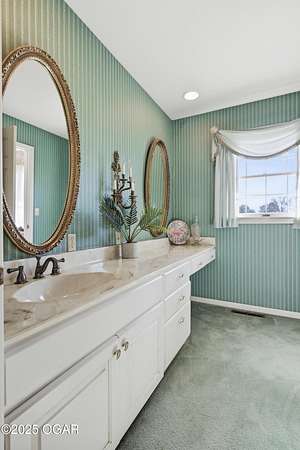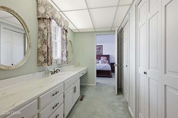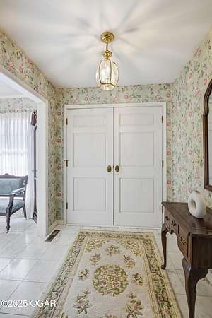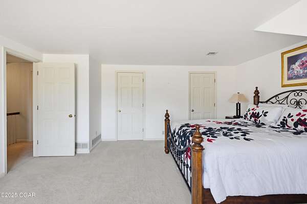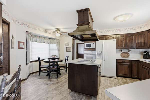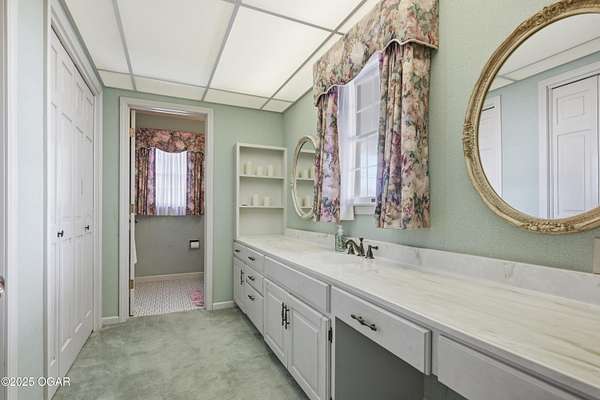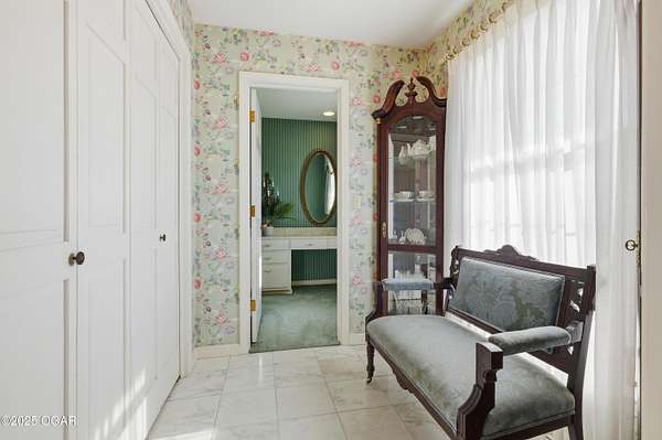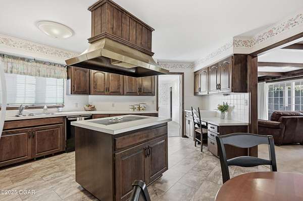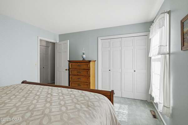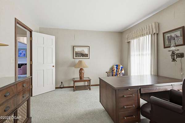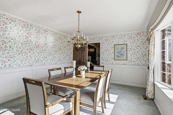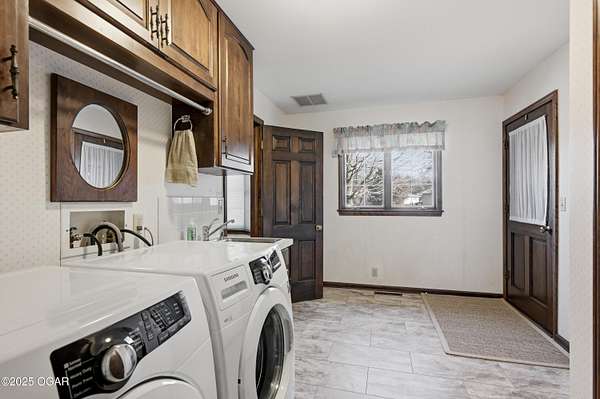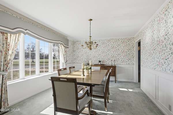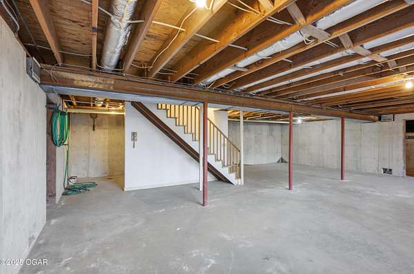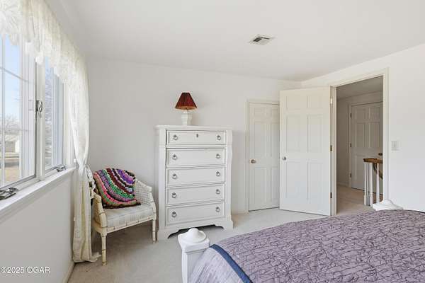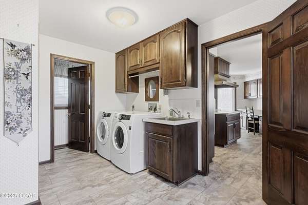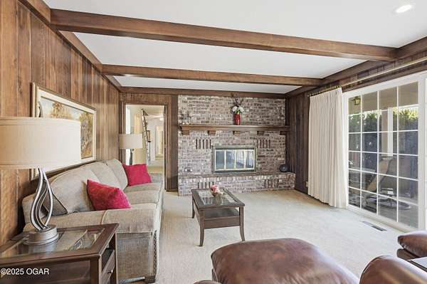 Discover timeless elegance and exceptional space at this stately two-story home on approximately 5.5 acres in Lamar, MO. A sweeping, circle asphalt driveway (recently resurfaced), welcomes you to a classic covered front porch with columns, setting the tone for the charm throughout. Inside, a gracious foyer, along with an elegant sitting room with a generous coat closet, complete with a formal powder room/1/2 bath awaits you. The foyer continues to flow seamlessly to a formal living room with a cozy gas fireplace. The beautiful paned window wall creates extraordinary light to the entire room, which overlooks the picturesque backyard. The adjacent warm and inviting family room features a beamed ceiling, wood fireplace with a spacious mantle, and built-in book shelves. Both the family room and the formal living room have direct access to a covered porch/patio and the beautiful, private backyard. The formal dining room (adjacent to the kitchen), overlooks the front yard with a breathtaking window wall. The expansive eat-in kitchen offers a bay window, center cooking island, and a built-in desk. The nearby laundry room (Entry from the attached 2-car garage), includes a utility sink, cabinetry, and a coat closet. This home entry area also includes a separate 1/2 bath, including a shower. The foyer also opens up to the private hall, showcasing a dedicated office with built-in book shelves and south-facing windows that provide plenty of light for your workspace. At the end of the hall, your family or guests will enjoy their private bedroom and bath. A generous primary suite concludes the main floor with its en-suite bathroom with dual closets and sinks. And, a rare bonus; the primary suite includes a window wall overlooking the scenic backyard, with a walkout to your own private covered patio. Upstairs, two additional bedrooms and a full bath provide comfortable accommodations for family or guests. The four upstairs closets provide plenty of storage. The spacious unfinished basement delivers over 1,150 sq ft of flexible potential, ideal for storage, hobbies, or future expansion. Enjoy three covered patios/porches, lots of privacy, a 2-car attached garage with an outside door entry, plenty of onsite parking, and the rare combination of acreage and convenience within Lamar city limits. A remarkable property with character, space, and endless possibilities. Definitely a ''Must-See''!