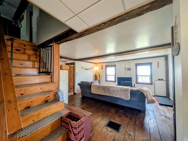 Step back in time without sacrificing modern comfort in this beautifully maintained 1780 Gambrel-Style home nestled in the heart of Lempster NH. Rich in character and history, this property has been thoughtfully updated by its current owners since purchasing in 2018. In 2022 the homeowners competed some major capital improvements including but not limited to a New Roof and Replacement Windows. They also updated the Kitchen and Appliances, making it the heart of this inviting home. The full Bathroom with Laundry is located on the main level of the home. Upstairs you'll find 3 bedrooms and lofted office space. Outside, the property truly shines. A spacious oversized garage offers ample storage and an additional space out back for a variety of uses. The property also features a Barn/Shed - formerly used as stables for goats and a fenced in chicken Coup area. This home is ideal for hobbyists, raising small livestock, and enjoying the many trails and gorgeous views this country retreat has to offer. Don't miss this great opportunity! Make your appointment today!