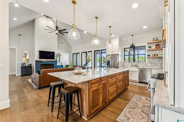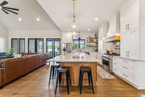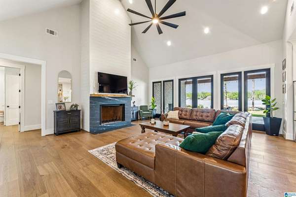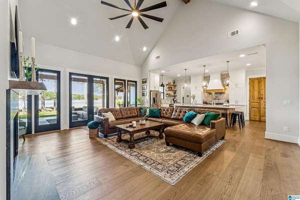 Est $6,638/moOPEN HOUSE April 11th, 11 a.m. - 1 p.m. Custom built spacious home located in Wilsonville on Bulley Creek with approximately 1500 feet of waterfront, just north of Beeswax Park/Marina. Main level with 5 Bedrooms and 4 full Baths. Exterior overlooks sunset view of water and has two covered porches, one with built-in grill and sink area, along with a fireplace and 1/2 Bath. Upper level has Bonus Room with additional full Bath. Approximately 5.71 acres which allows space for additional barn/workshop/guest house/pool/pool house, etc. Call your favorite Realtor for more information.