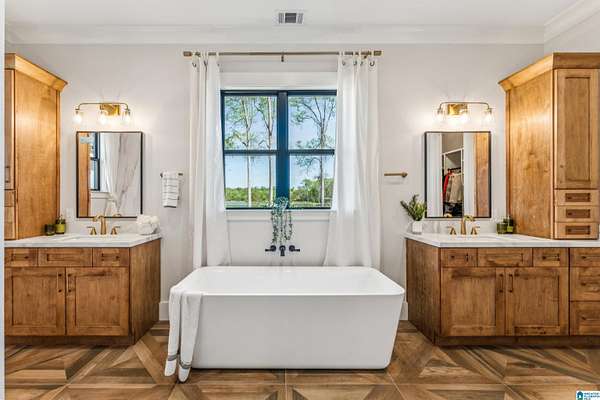 - French Doors, Garden Tub, Recess Lighting, Separate Shower, Separate Vanities, Tub/Shower Combo