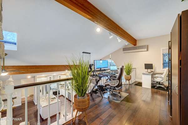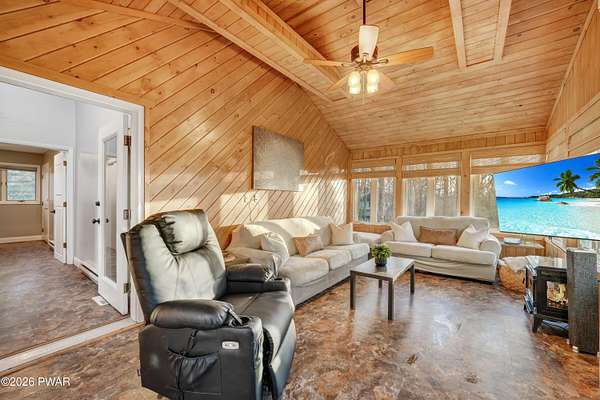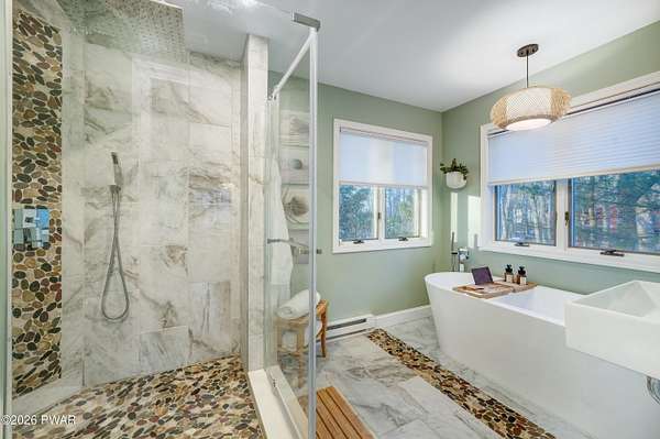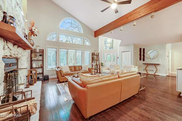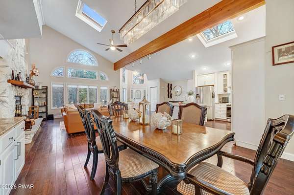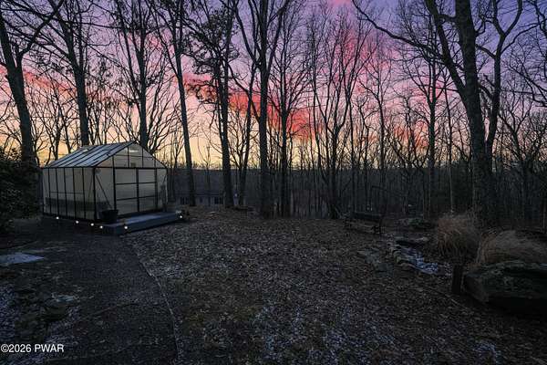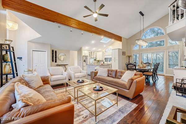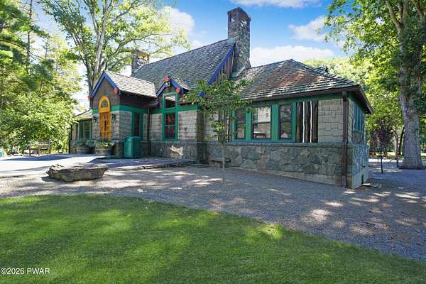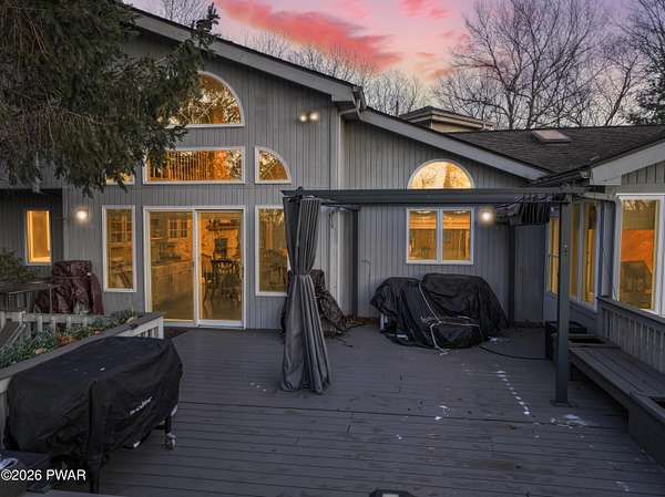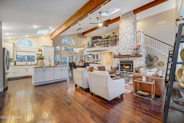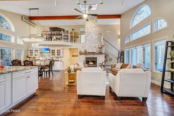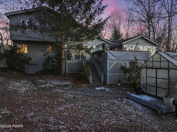 *OPEN HOUSE* 1/17 10AM-12PM. LOCATED IN THE HIGHLY SOUGHT-AFTER AMMENITY-FILLED COMMUNITY OF HEMLOCK FARMS, THIS NEWLY UPDATED, ONE-OF-A-KIND CONTEMPORARY HOME IS SET ON THREE COMBINED LOTS TOTALING NEARLY TWO ACRES OF PRIVACY, MOUNTAIN VIEWS, AND LANDSCAPE. From the moment you arrive, the home captivates with its sense of seclusion, impressive scale, and striking architectural design, creating an immediate and lasting impression. Inside, refined luxury meets dramatic design. This home features three bedrooms and two-and-a-half bathrooms, all enhanced by high-end finishes and thoughtful craftsmanship throughout. A grand foyer welcomes you into an extraordinary living space anchored by a floor-to-ceiling white stone wood-burning fireplace, soaring vaulted ceilings, wooden beams, skylights, and an open-concept layout flooded with natural light. Walls of expansive windows create a stunning glasshouse effect, seamlessly blending the indoors with the surrounding landscape. Overlooking it all, a versatile loft offers the perfect setting for a home office, reading retreat, or additional entertaining space. The chef's kitchen is both functional and elegant, showcasing granite countertops, a stone backsplash, a spacious island with a prep station, and effortless flow into the dining area. An eye-catching chandelier and sprawling breakfast bar. The main-level primary suite is a true sanctuary, complete with a glamorous dressing room, walk-in closet, and a spa-inspired bathroom featuring a soaking tub and an oversized walk-in shower with a full coverage showerhead and pebble stone flooring--designed for a spa tranquil waterfall-like experience. A stunning four-season room offers a front-row seat to nature, where you can watch the seasons transform throughout the year and enjoy unforgettable sunsets over the mountains. Step outside to the expansive deck, perfect for hosting friends and family, along with a 10x12 greenhouse. This home meets luxury, comfort, and natural beauty!