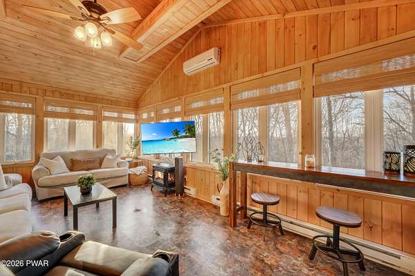 - Baseboard, Ductless, Electric, Fireplace(s), Wood