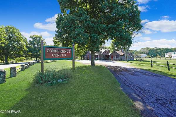 Enter the Main Gate, follow Hemlock Farms Rd, turn right onto Remuda Dr, house is on the right. Long driveway to a Big White house, Welcome Home!