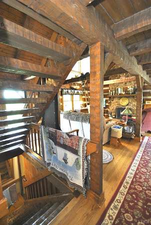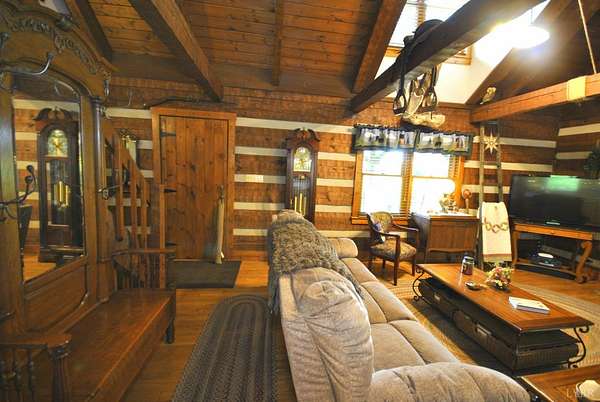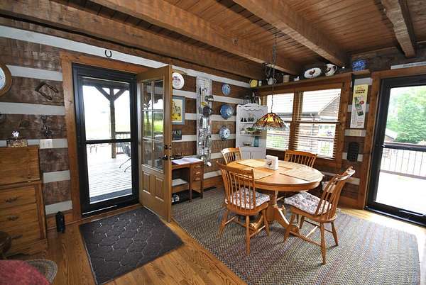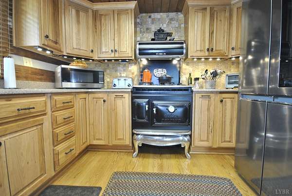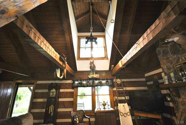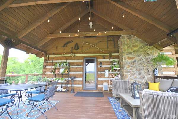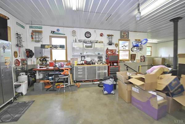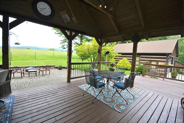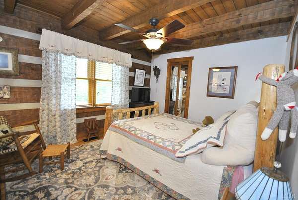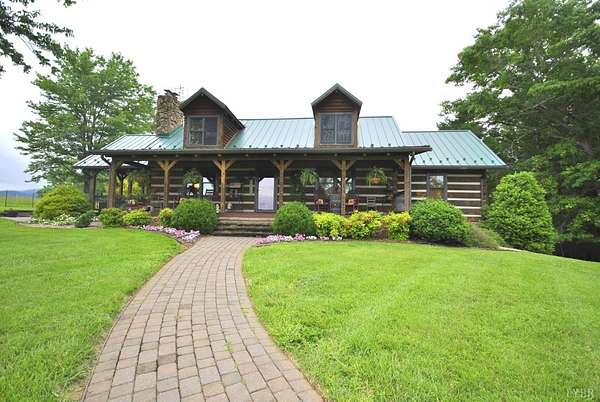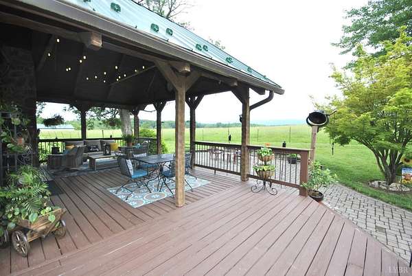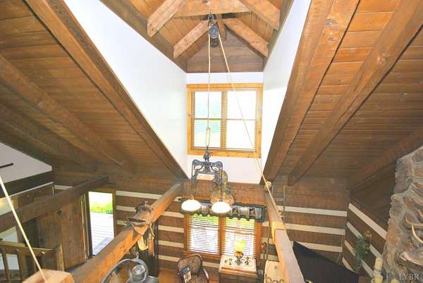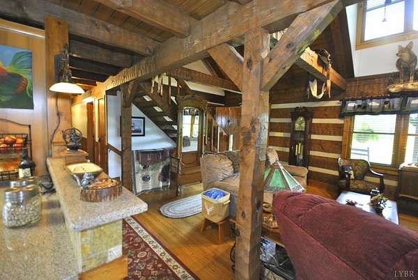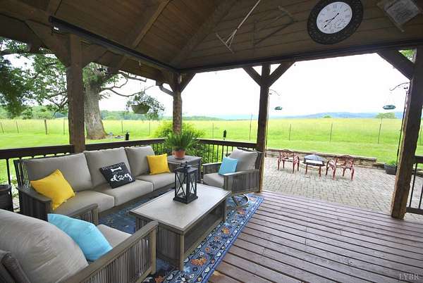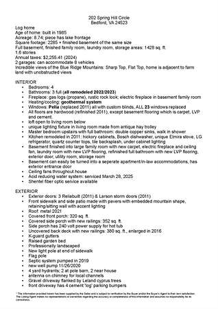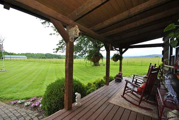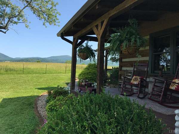GEOTHERMAL system for your heating/cooling. UNOBSTRUCTED VIEWS of the Blue Ridge Mtns. 7 GARGAGE BAYS to include an RV sized bay. METAL ROOF in 2021. PELLA windows throughout house. RAISED GARDEN BED. 8.7 ACRE LOT w/lake frontage on corner of the property. LOW POA FEES $200/year. SHENTEL FIBER OPTIC INTERNET service available. 2ND garage has new METAL roof, cement floor, 4 garage doors & storage section (She Shed) with its own entry door. THREE main floor BR &hand-hewn stairs lead to one BR, bath & loft upstairs. Entire neighborhood road completely resurfaced. Lake provides FISHING, boating (no motors) & abundant wildlife (ducks, geese, bald eagle) to residents. 3 full remodeled bathrooms. Wonderful Kitchen w/ hickory cabinets, Bosch dishwasher, retro Canadian Elmira gas stove & quartz counter tops. Enjoy views of adjacent farm land & the Peaks of Otter from your front porch, covered side porch (power supply for hot tub), the back deck or patio w/ fire pit. Septic tank pumped in 2025.