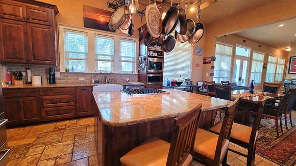 Texas Hill Country Dream Ranch w/ Main Home & 2nd Home, just outside Bandera * HUGE Tax Break with the Wildlife Exemption * Beautiful Custom Built Limestone 3/2.5 3,484sqf home, with 12' high ceilings * Chefs Island Kitchen, with large Viking Gas Range, Built-in Viking Refrigerator, Farm Sink & Granite Counters, XL Butlers Pantry* XXL Master Suite w/ XXL Bathroom and Custom Closet * Expansive Bonus Room Upstairs *Metal Roof * Installed in 2023, All Windows & Exterior Doors, plus HVAC Units in both Homes *3/2 Guest Home 1,872sqf (Currently Airbnb) 2 Shop/Garage Buildings, Bldg 1. 30'x80' w/ bathroom, water & electricity* Bldg 2. 36'x48' w/elec* Lots of Covered Storage, Equipment & Trailer Storage & Loafing Sheds * Main home has Huge Flagstone Patio & Stone made Grilling Station, with built-in Viking Gas Grill * Covered Porches Across front & rear of home * Good Soil & Grass, level w/gentle slope * Fenced & Crossed Fenced for Horses * Lots of large Oaks * Located on Private Road with automated gated entrances.