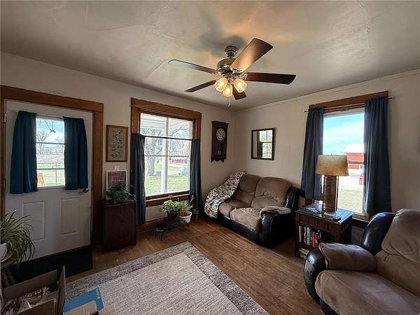Imagine living on your own secluded approximately 6 acres of land, yet minutes from town for those day-to-day conveniences and important amenities. With excellent high speed fiber optic internet, location is perfect for at home workers, students, business professionals and more. This place will surprise all with not only the major updates but also the custom features the owners have completed. Let us start with the major updates - the well pump and components were replaced as well as a new septic system installed in 2019. The home has a newer furnace and central air system and ducting. The electrical service has been updated to 200 amp service and trenched to the out buildings. An amazing 40X64' Pole shed with a 14' High OHD, 16' Sidewalls, cement floor and drain, constructed in 2019. The Barn has a newer metal roof, the loft has been turned into a weekend getaway with a pool table, bar setup and deck for entertaining. For the practical parts of life, if you want to garden, there is plenty of space for your vegetables. There is a variety of trees, and other fruitful bushes to appreciate like lilacs, raspberry, rhubarb, apple trees, plum, cherry, black walnut, spruce, pine and more! In addition, there is a hog barn, chicken coup and a granary with lean-to for added vehicle or equipment storage or animals. The home has vinyl siding, double hung windows, hardwood floors and could be updated with personal touches and finishes as so desired by a buyer to make it their own. The main floor has natural woodwork throughout, a formal dining area, living room, farm style kitchen, a possible bedroom or den, plus the laundry. The upper level has a full bathroom and 3 bedrooms. When you wake up in the morning you can walk outside onto your private porch and breathe in the fresh air before starting your day. A buyer may purchase the other 4.73 tillable acres for an additional cost. Call for a showing today. Please do not enter the driveway unless you have a scheduled showing.