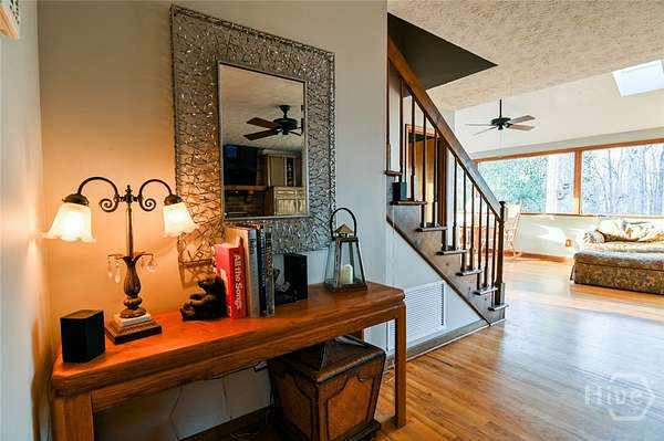 In search of a piece of paradise in North Oconee? A rare find indeed, this eclectic property offers 5 acres of peace and quiet plus a main home with the primary suite on main, a guest suite (currently used as a home office), open floor plan, fabulous entertaining areas and a warm and cozy vibe. Upstairs, you'll find 2 additional bedrooms, and a full bath. The deck is the perfect place for nature watching, and the views are spectacular. But the icing on the cake is the detached guest house, featuring a bedroom, bath, living area and kitchen. This truly unique property offers something for everyone! Check out the photos and call us today for a tour.