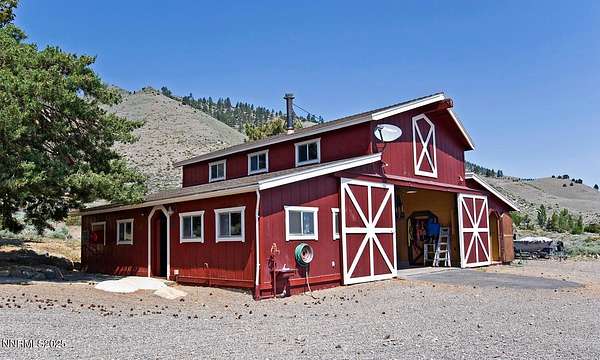 This comfortable home offers a warm & inviting ambiance in a very private and peaceful treed setting with views galore. The spacious kitchen has granite countertops, breakfast bar & ample cabinetry. There is a large dining area, cozy gas free standing fireplace on rock hearth, comfortable living room, two spacious bedrooms (opposite ends of the house) and a bathroom with double sinks, clawfoot tub/shower. A pull- down ladder leads you to a private loft with 2 separate bonus rooms providing extra living space/bedrooms or hobby rooms. There is a detached structure that serves as a great guest bedroom or private office. The traditional style, 1536 sq ft barn offers a game room with bar & pool table, large garage area, workshop area, tons of cabinet space for storage and an upstairs walk around attic area providing a ton of storage space or potential room conversion. This property offers huge mature, beautiful trees and lush landscape providing a park like setting. There is a peaceful shaded deck with amazing views. The property is fully fenced with two entry gates, cleared perimeter trail, easy access for RV's and horse trailer. This property would be perfect for the equine enthusiast with plenty of room for a horse barn and corrals and a lot of great riding areas nearby. Other special features include: Milgard triple pane windows, new septic and leach field in 2021, Azec decking in front of the home installed in 2012, newer roofs on all structures (newest was the house roof in 2014), power & water to barn/garage, propane stubbed to deck for BBQ. This is a unique property offering something for everyone. And the close proximity to Lake Tahoe, ski Resorts, numerous beautiful golf courses, all kinds of mountain lakes, rivers and streams make this location perfect for outdoor enthusiasts of all types. Easy drive to the Carson Valley where you will find all amenities and activities and short drive to the quaint little town of Markleeville for great dining opportunities, hiking galore, Grover Hot Springs and wonderful trout fishing!