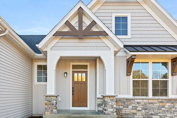 Welcome to this charming cottage-style ranch, where thoughtful design meets everyday comfort. The main level features 2 bedrooms and 2 full baths, including a private primary suite with a spacious walk-in closet, dual vanity, and separate water closet. The open-concept living area flows from a welcoming foyer into a bright great room, dining space, and a stylish kitchen with a curved island and snack ledge. A convenient mudroom and main-floor laundry add ease to your routine. Downstairs, enjoy a finished rec room, third bedroom, full bath, and ample storage. This is the Whitby floor plan by JTB Homes. Buyer(s) eligible for rate lock being offered by seller. See documents for more details.
