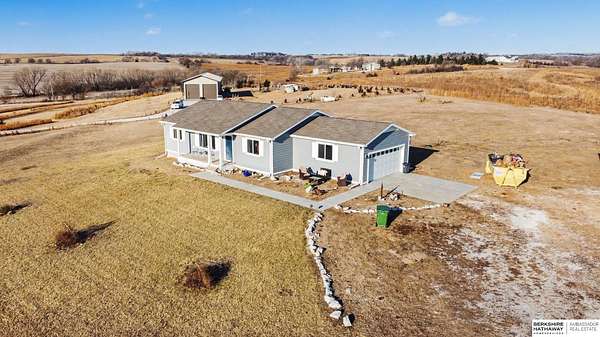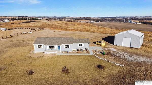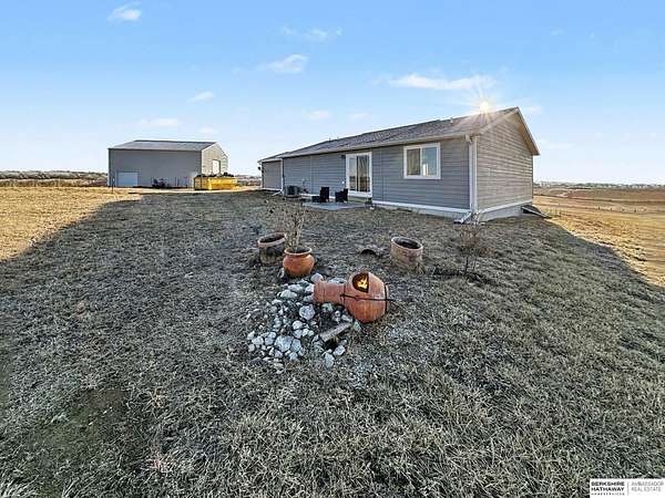Tammy Bennett, M: 402-676-7013, tammy.bennett@bhhsamb.com, https://www.bhhsamb.com/tammy.bennett - This beautiful ranch home sits high and sightly on nearly 4 acres, offering breathtaking 365-degree views and peaceful country living. The open floor plan is perfect for everyday living and entertaining, featuring 3 spacious bedrooms and 2 baths. The full basement includes a bath rough-in and an egress window, providing excellent potential for a future 4th bedroom or additional living space. A 38x30 outbuilding with a concrete floor and oversized overhead door is ideal for a hobbyist, storage, or workshop. Enjoy wide-open spaces, incredible views, and endless possibilities. There is a back up generator system and a mini split for the shop that just needs installed. This property is truly one of a kind!