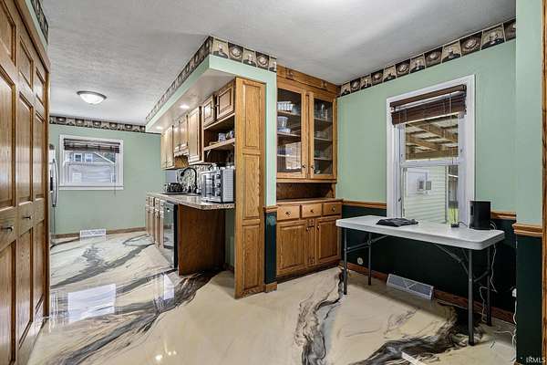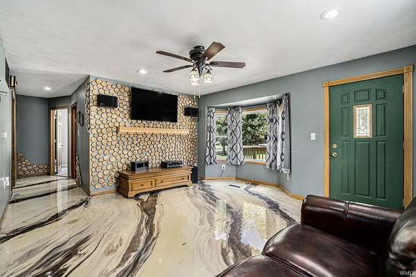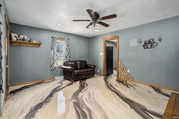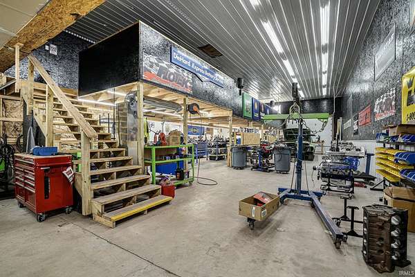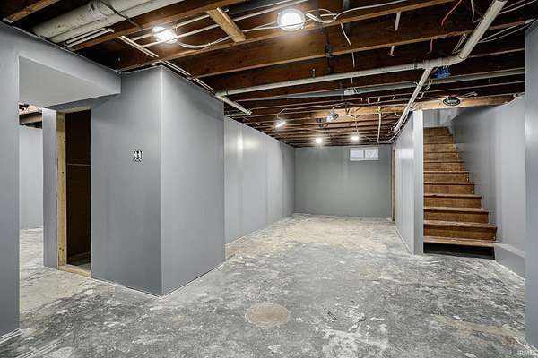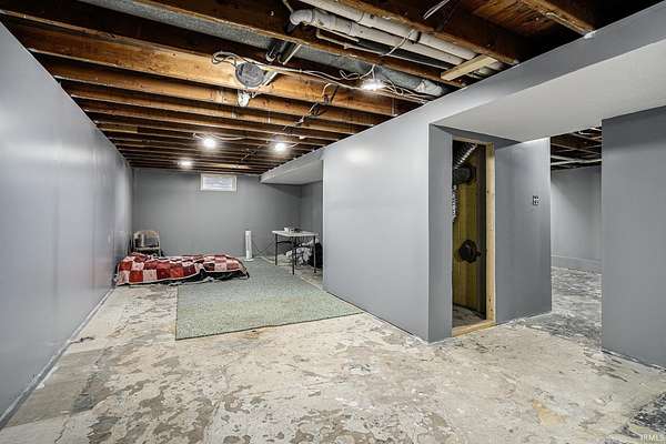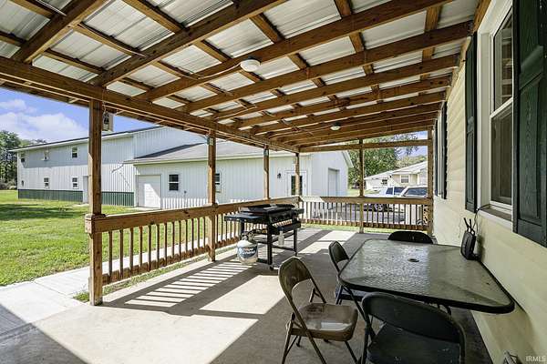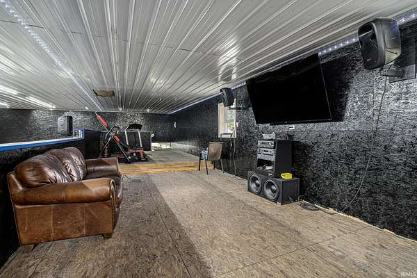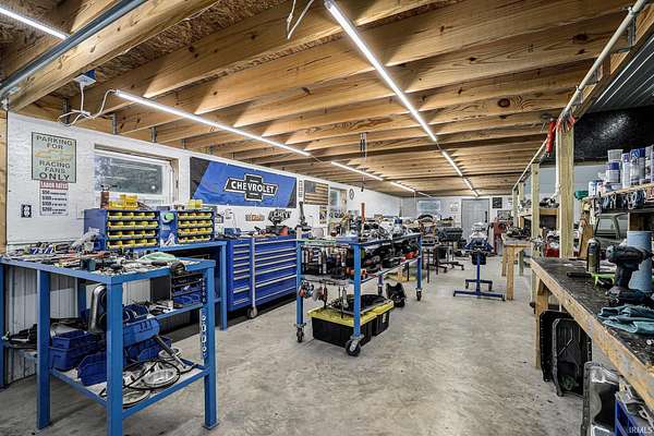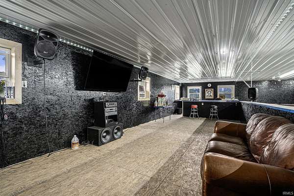 This well-maintained 3-bedroom, 1-bathroom ranch offers 1,310 square feet of comfortable living space on a generous 1.5-acre lot. The home features epoxied concrete and carpet flooring throughout, with an accent wall adding visual interest. The galley kitchen includes stainless steel appliances for efficient meal preparation. Practical amenities include main-level laundry convenience and a heated attached 1-car garage for year-round comfort. Step outside to enjoy the covered back porch and wood fire pit--perfect for outdoor relaxation and entertaining. The lower level is just waiting for your finishing touches. Finished walls but no flooring. The property includes a massive 30X100 outbuilding with a party room (man cave)in the loft, providing additional space for gatherings or hobbies. The outbuilding features 2 furnaces, 4 garage doors and a sink/water. Home Details: The lower level was professionally treated in 2003 with Everdry waterproofing for added peace of mind, new water heater in 2022, new LED lights in the lower level, the lower level is drywalled and ready to be finished.