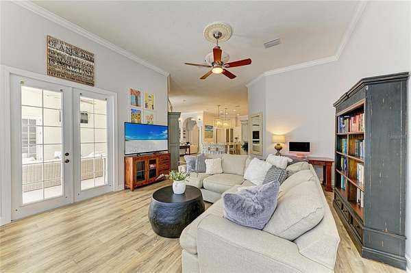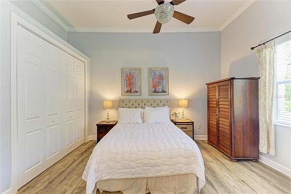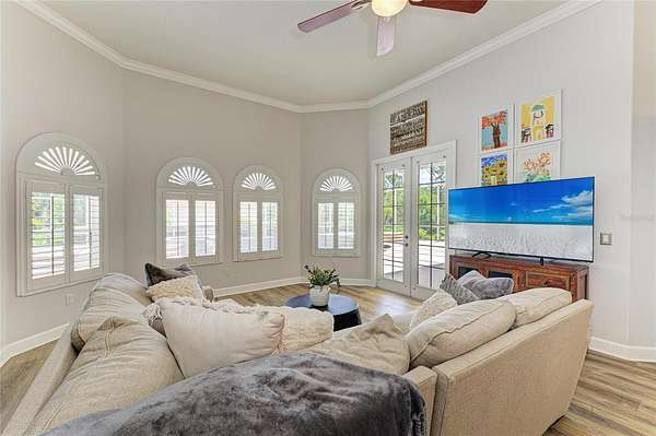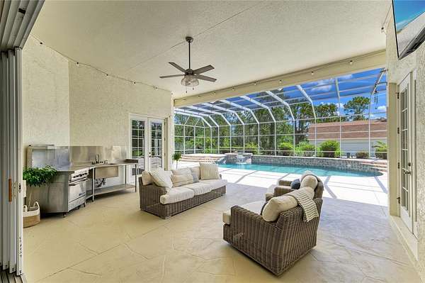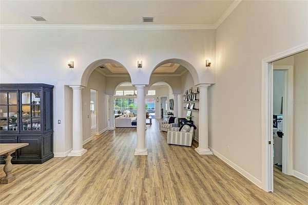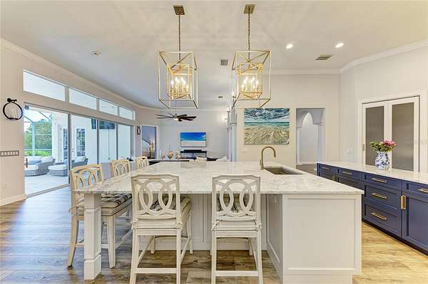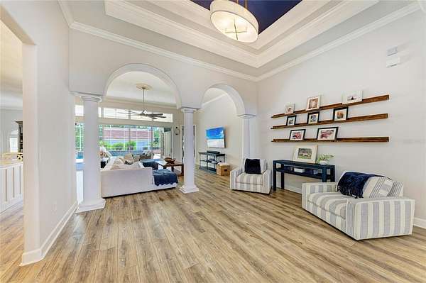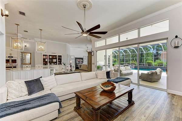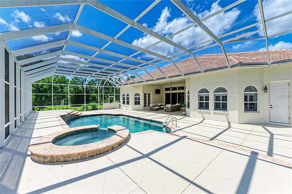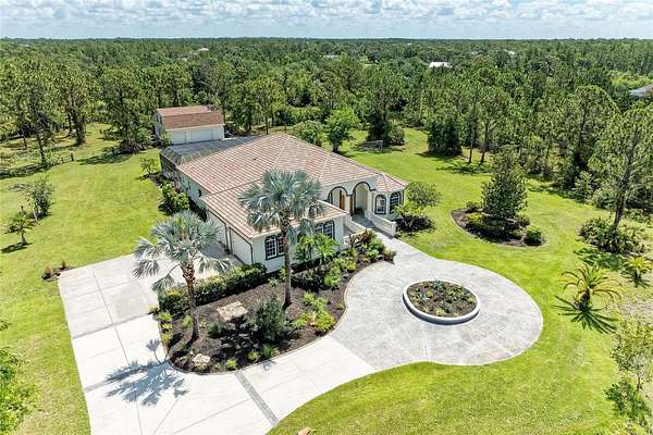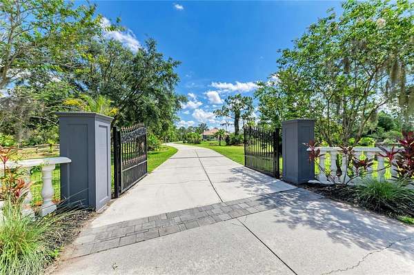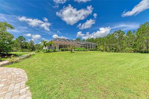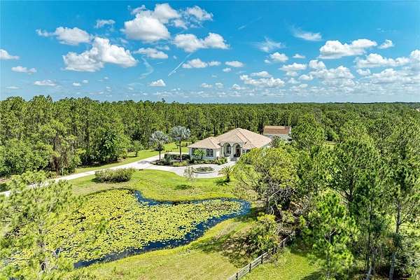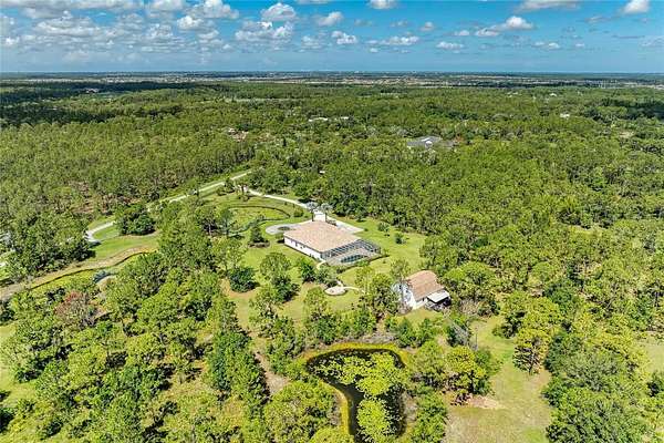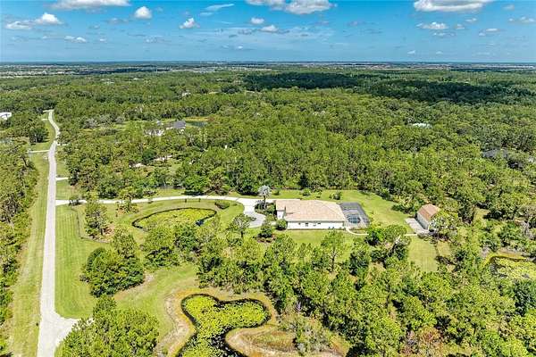 Welcome home to this elegantly REMODELED custom estate set on 5 private acres in the highly desired, equestrian-friendly community of The Forest at Panther Ridge! The Forest is 1 of 9 sections within Panther Ridge encompassing approximately 4,500 acres & 15 miles of scenic trails perfect for hiking or horseback riding. This stunning estate sits on 5 fenced acres consisting of towering pines, oak trees and two ponds on a private, dead-end street. This 3,890 square foot luxuriously REMODELED home has exceptional custom details throughout PLUS a 7 CAR GARAGE (4 car attached to main home & a 3 car detached garage)! The 3 car detached garage has a finished interior complete with spray foam insulation, drywall and paint. UPSTAIRS is a bonus/theatre room providing an EXTRA 595 sq ft., of living space. Dual-Head Mini Split AC system services both the garage area & upstairs bonus room. ALL GARAGE DOORS are MyQ enabled & can be opened & closed with the APP from anywhere! THIS gorgeous home includes 5 bedrooms, 4.5 bathrooms, two of the guest bedrooms are ensuites, a large covered lanai area with a HUGE pool & spa perfect for entertaining & a newer paver walkway leading you to the firepit area & detached garage space. Upon entering the grand foyer you are taken back by the custom details with 14 foot ceilings in the entry and primary bedroom and 12 foot ceilings throughout the rest of the home, elegant columns, tray ceilings and a direct view of the pool area through the 4 large, pocketing sliders. The stunning AND extensive high-end kitchen remodel done in 2021 will take your breath away with no expense spared! Gorgeous 42" white, dove-tailed, soft-close cabinets, GORGEOUS MARBLE TOPS, two islands one being a HUGE family-style island with seating, custom-carved decorative legs & tons of under-counter storage all push to open/close. Franke faucet and Franke fragranite sink which is an exceptionally tough material highly resistant to burns, dents, chips & stains. GE luxury-line Cafe Series appliances including two wall ovens with multi-level convection & one with French door. ALL Cafe Appliances are App enabled & can set custom routines, such as having range hood turn on & off with cooktop. Cooktop is Bluetooth enabled allowing communication with Heat Cue Smart Cookware on the App. You will appreciate the LARGE, DESIGNER lights over the island bringing warmth and elegance to this space. OTHER UPDATES & FEATURES: Tray ceilings, crown molding. 2021: NEW high-end Mannington luxury-vinyl flooring & NEW designer lighting throughout. Guest bath renovations: NEW vanities, tops, faucets, & lighting. NEW fire pit & paver path, NEW Westinghouse/HTP Lifetime stainless steel water heater. 2025: NEW front porch anti-slip tile & NEW painted lanai. NEW pool salt cell & wireless Pentair pool controller. 2023: New pool pump. 2022: NEWLY painted house & detached garage exterior, NEW well pressure switch. 2020: NEW 2.5 ton A/C main house, NEW window balances & locks, wireless irrigation system. 2019: NEW house garage door openers. THIS PEACEFUL & PRIVATE COUNTRY LOCATION is ONLY minutes to Lakewood Ranch, shopping, dining, LWR Hospital, UTC Mall, Waterside & A-Rated Lakewood Ranch schools! A short drive to our area's beautiful beaches & airports! This elegantly remodeled country estate perfectly combines exceptional custom features with a PRIME LOCATION! Come fall in love with this beautiful estate in the highly-desirable Panther Ridge community!