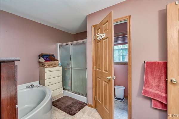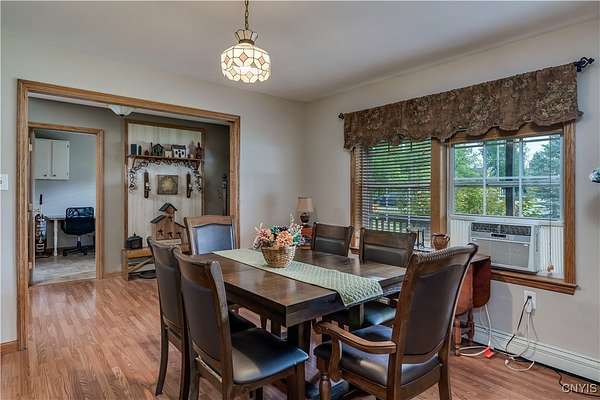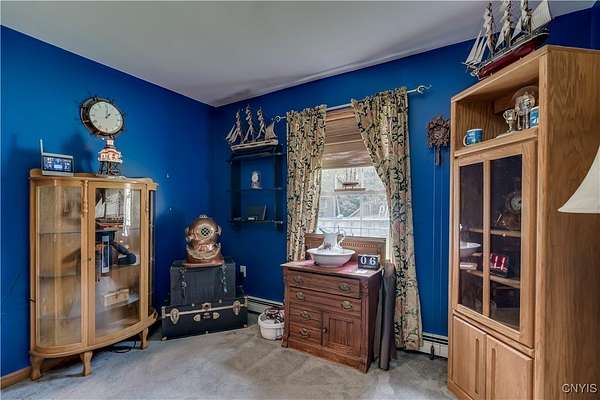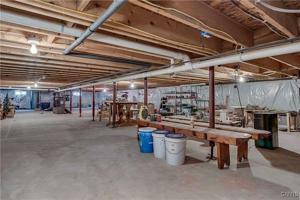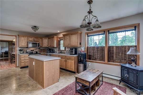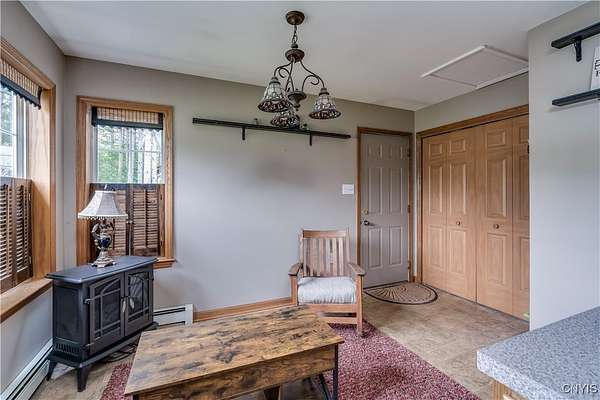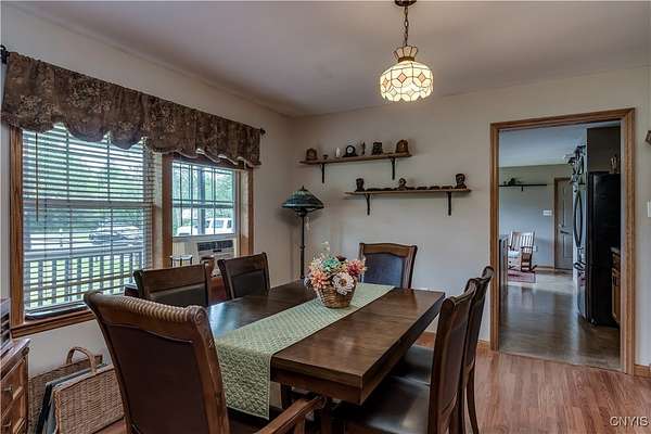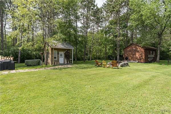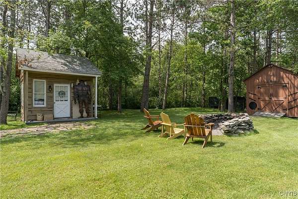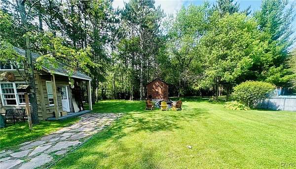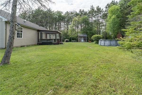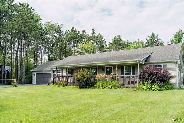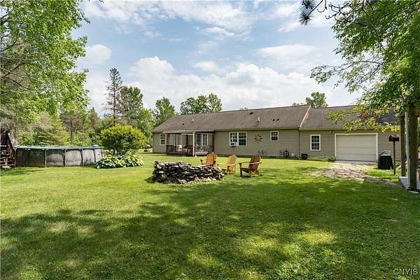Welcome to this conveniently located ranch home offering the perfect mix of comfort, space, and outdoor enjoyment. Set on 4.36 beautiful acres, this property features trails, an inviting pool, fire pit area and a private backyard oasis-ideal for relaxing or entertaining. Inside, you'll find 3 bedrooms plus a possible 4th bedroom or office, giving you flexibility for family, guests, or remote work. Enjoy a formal dining area perfect for gatherings, and a spacious kitchen ready for all your culinary needs. Sip your morning coffee in peace on the back porch or take in the country charm from the expansive front porch. The attached 2-car garage includes a dedicated workspace, with lots of parking for guests, equipment, or recreational vehicles. A full crawl space offers tons of extra storage, while 3 sheds-each with electric-provide versatile space for hobbies, tools, or outdoor gear. All this with low taxes and a fantastic location close to Fort Drum, Watertown, and shopping. This unique property combines comfort, privacy, and convenience-don't miss it!
