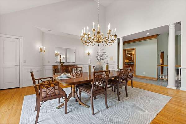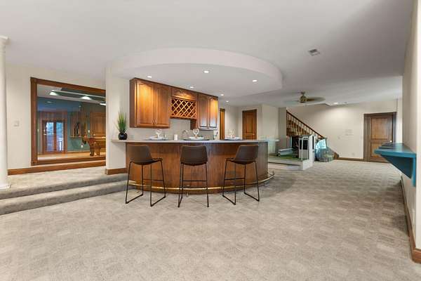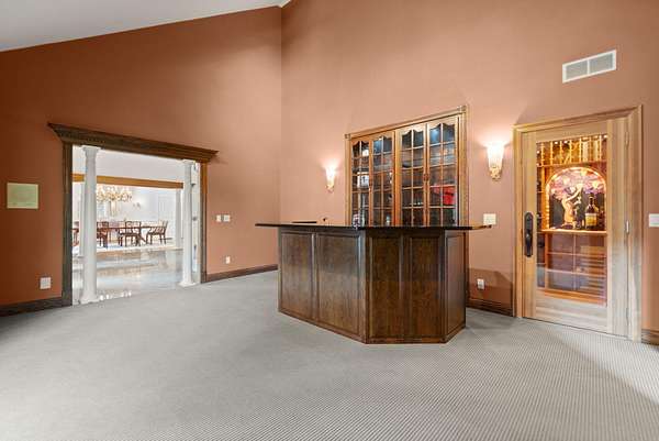 - Bookcases, Breakfast Bar, Built-In Features, Cathedral Ceiling(s), Ceiling Fan(s), Chandelier, Crown Molding, Double Vanity, Entrance Foyer, Granite Counters, High Ceilings, Kitchen Island, Master Downstairs, Multi Panel Doors, Natural Woodwork, Open Floorplan, Track Lighting, Vaulted Ceiling(s), Walk-In Closet(s), Wet Bar