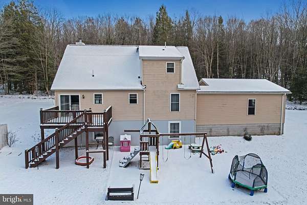 Charming Cape Cod set on just under 3 private acres in a peaceful country setting. This 3-bedroom, 2-bath home offers the perfect blend of comfort, space, and functionality. Step inside to an inviting open-concept layout where the kitchen, dining, and living areas flow seamlessly together, highlighted by a cozy wood-burning fireplace-ideal for relaxing evenings. The main level also features an additional family room, providing flexible space for entertaining, a home office, or playroom. A full basement offers excellent potential to be finished for additional living space. Plumbing and electrical remain intact for an outdoor wood or coal stove, adding efficiency and versatility. Outside, enjoy summer days by the inground pool, a large backyard with a dedicated play area, and plenty of room to roam and relax in total privacy. A spacious two-car garage provides ample storage, while the large front porch and rear deck are perfect for enjoying the surrounding natural beauty. This property offers country living at its best with room to grow-don't miss the opportunity to make it your own.