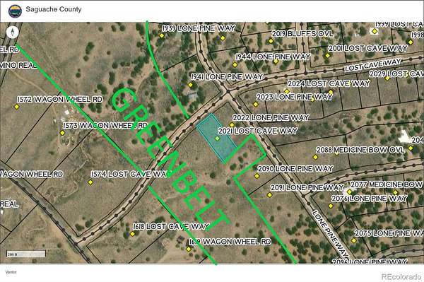 Camino Baca Grande, Right on Camino Real, left on Wagon Wheel, turn left on Lost Cave way. This lot is one lot off of the corner of Lone Pine and Lost Cave Way.