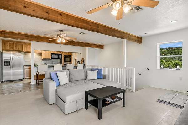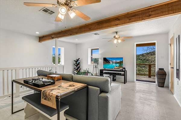 Set across 34.851 acres in the Texas Hill Country, this is a rare opportunity to own a tract of this size with an existing home, infrastructure in place, and room to expand-all within a short drive of Cedar Park and Austin. Properties offering this combination of acreage, privacy, infrastructure, and proximity to Austin are increasingly difficult to find. The existing home is positioned to capture long-range views and provides immediate usability-ideal as a full-time residence, weekend retreat, hunting lodge, or while building a future home. The open-concept kitchen and living area include granite countertops, stainless steel appliances, and access to a covered deck overlooking the Hill Country. The layout offers two bedrooms, two full baths, a half bath, and a versatile upper-level loft with commanding views. The lower level features an oversized garage/workshop with a laundry area and utility sink, offering storage and potential for additional finished space. The land features rolling terrain, elevated viewpoints, and multiple potential building sites. A private well, septic system, and electricity are in place, providing a strong starting point. Additional power can be extended along the east side of the property through PEC, and a water line extension through Jonestown Water Supply has been indicated as feasible. The property borders a 580-acre section of the Balcones Canyonlands National Wildlife Refuge-part of a larger federally protected habitat-offering lasting privacy, unspoiled views, and the peace of mind that comes with land preserved for generations. Situated in the ETJ of Lago Vista, the site supports a wide array of residential and recreational possibilities. Alternative purchase option available for 10.317 acres without improvements (MLS #2465738). This is a standout opportunity to own meaningful acreage with immediate usability, strong infrastructure, and long-term flexibility in one of Central Texas's most sought-after regions.