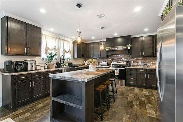 This 2023 doublewide mobile home sits on 6.25 partially cleared acres in Kentwood, offering four bedrooms, two baths, and an open-concept layout. The kitchen features a large island, abundant cabinet storage, and plenty of counter space, making it both functional and inviting. The living room, complete with an electric fireplace, flows seamlessly into the dining area, creating an open and welcoming space for gathering. The primary suite offers a spacious walk-in closet, a relaxing soaker tub, and a separate walk-in shower. A den at the back of the home provides extra space for a game room, additional bedroom, or second living area. Located in Flood Zone X, this property offers the perfect blend of space, comfort, and country living. Seller recently added valuable upgrades. A spacious workshop and a large, beautifully designed gazebo. Both structures may remain and buyer has the option to assume the current monthly payments, or seller can increase the purchase price to include the payoffs.