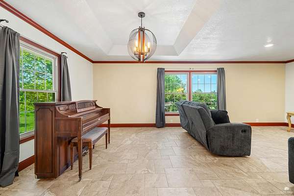This spacious 4-bedroom, 3-bathroom home is brought to you by Amanda Miranda with Mathis Lueker Real Estate - call for a showing! This amazing home sits on a generous 1.8-acre lot and offers a warm, welcoming layout.The main floor features a large kitchen, separate dining area, and open living space-perfect for both everyday living and entertaining. Three well-sized bedrooms are located on the main level, including one with a private ensuite, plus a full hall bath. The finished basement adds even more living space with a large family or rec area, laundry and utility room, and a fourth bedroom-ideal for guests or a home office. Whether you're looking for room to grow, space to entertain, or just a peaceful retreat, this property delivers. Don't miss the chance to own this beautiful home!