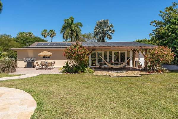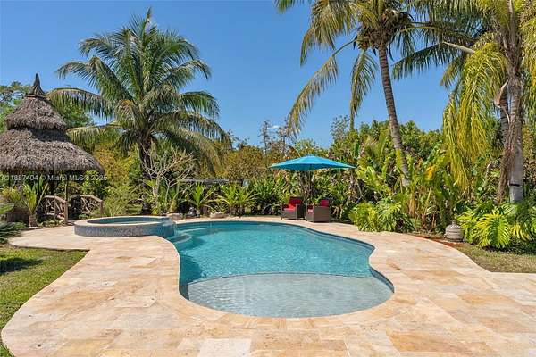 Enter the World of "La Chakana". This 2 AC Paradise sits in Redland Miamis Agricultural Community. This is not just a home, but a lifestyle. As you enter the custom gates you feel the magic. She's a 4/4 updated, 3-way split "Suite" floorplan, with a custom kitchen & large living area that overlooks the pool & gardens. This property features an Artisan Studio Building ideal for meditation plus, a pool/spa with travertine deck, 2 tikis', barn for your animals or storage and amazing grounds loaded w organic asst edibles. Meandering pathways lead you to all the solace & peace you can find, truly a one-of-a-kind retreat home/venue full of love & character. Fully fenced, electric gate, solar equipped w excess sold back to FPL & Ag Exempt for low taxes.