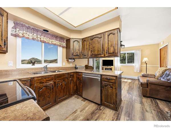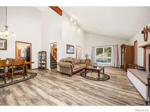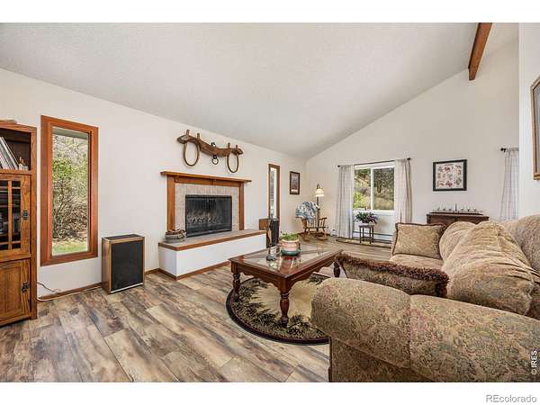 The mountain home you have been waiting for! Incredible opportunity to experience the peace of mountain living in this well-maintained 3 bed, 2.5 bath two-story home, ideally located off Buckhorn Road with easy year-round access. Only a short drive to Fort Collins & Loveland! Nestled on 13.82 private acres, the property offers sweeping views, ample wildlife, and true serenity-just a short drive from Loveland. Explore nearby scenic destinations including Rocky Mountain National Park, Pingree Park via Buckhorn Cutoff and the Poudre River corridor. Relax on the expansive back deck while watching mule deer roam. Inside, enjoy an open, light-filled layout with vaulted ceilings, large windows, and a cozy wood-burning fireplace. The kitchen features generous cabinet and counter space, stainless steel electric range and microwave, and all appliances are in excellent condition. Adjacent, the family room offers comfort and mountain views. Upstairs, the spacious primary suite includes a full bath and a private south-facing deck with the best views on the property. Two additional bedrooms and updated baths with tile flooring, stylish counters, and modern lighting complete the second floor. The walk-out basement includes a custom workshop, bonus room (perfect for an office or gym), walk-in sauna, storage, and space to expand. Outside, enjoy a 720 sq ft barn, three sheds (including one suitable as a chicken coop), mature irrigated landscaping, garden beds, and a water feature. The barn and turnout area are ideal for horses or livestock. Additional features include newer windows and a wood-burning hot water heat system that supplements the main heat source for added efficiency. One owner home with pride of ownership evident throughout! Whether you're looking for a full-time home or a peaceful retreat, this property blends comfort, space, and unbeatable access to Northern Colorado's natural beauty. Schedule your private showing today!