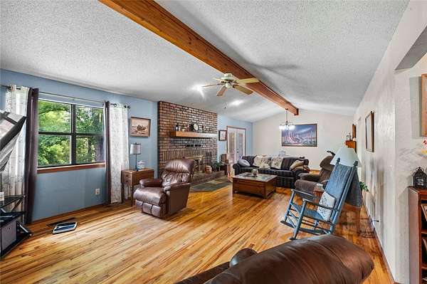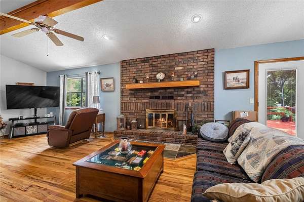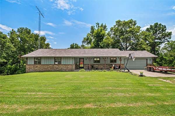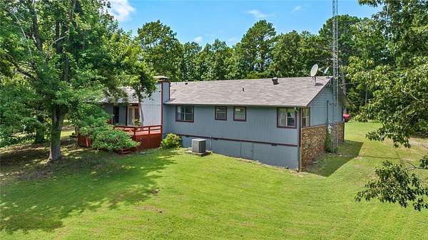 Welcome to this little slice of heaven just 2.3mi from Rocky Branch Marina! Set on an expansive 6.6-acre lot, this charming 3bed/2 bath home offers 1,668sqft of living space. Special features include a floor-to-ceiling brick wood-burning fireplace, spacious kitchen, open dining area & a covered front porch. Take in nature surrounded by your wooded view on expansive outdoor deck (New this past year). Property also has had new roof in July of 2025. Primary ensuite has a nice walk-in closet and beautiful serene view out of the bedroom windows. This gem is just a short 14-mile drive to downtown Rogers, offering the perfect balance of serene seclusion & urban convenience. Oversized 2 car garage. Don't wait on this one, it won't last long!
