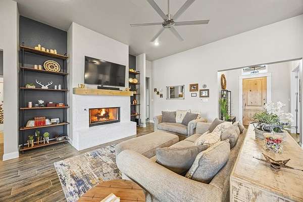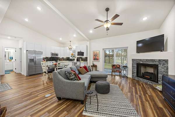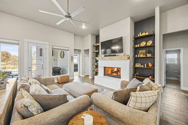 One-of-a-kind estate in Poolville offering exceptional multi-generational living on 2 beautifully treed acres. Designed with versatility, efficiency, and comfort in mind, this estate features a spacious main home, a fully separate barndominium-style ADU, shop and RV parking, and resort-style outdoor living. The main residence offers 4 bedrooms, 3 bathrooms, a private office, and a second living area, providing flexible space for family, work, or entertaining. The open-concept design is anchored by a well-appointed kitchen featuring a gas cooktop, ample counter space, and seamless flow into the living and dining areas. The primary suite is generously sized and includes a large walk-in closet and spa-inspired bath. Step outside to an exceptional outdoor living space with a large covered patio complete with a fireplace, perfectly positioned to overlook the in-ground pool. A dedicated pool house, while the surrounding fire pit and mature trees throughout the property create a private, inviting atmosphere ideal for year-round enjoyment. The property is exceptionally well-improved with a 40x50 insulated shop, a 14x50 covered RV parking area, and an additional 14x40 covered concrete space, offering abundant room for vehicles, equipment, hobbies, or business use. A standout feature is the fully separate 30x50 barndominium ADU, totaling approximately 1,500 sqft including the garage, 1,085 sqft of heated living space. This residence includes 2 bedrooms and 2 bathrooms, its own private driveway, and a separate county-assigned address with its own mailbox, making it ideal for extended family living, guests, and hosting while maintaining privacy from the main home. Additional highlights include owned solar panels, multiple driveways for ease of access, and thoughtful site planning that balances privacy with functionality. This isn't just a home--it's a lifestyle built for comfort, freedom, and flexibility. TXT RODEO6 to 88000 for a full video, more photos and deed restrictions.
